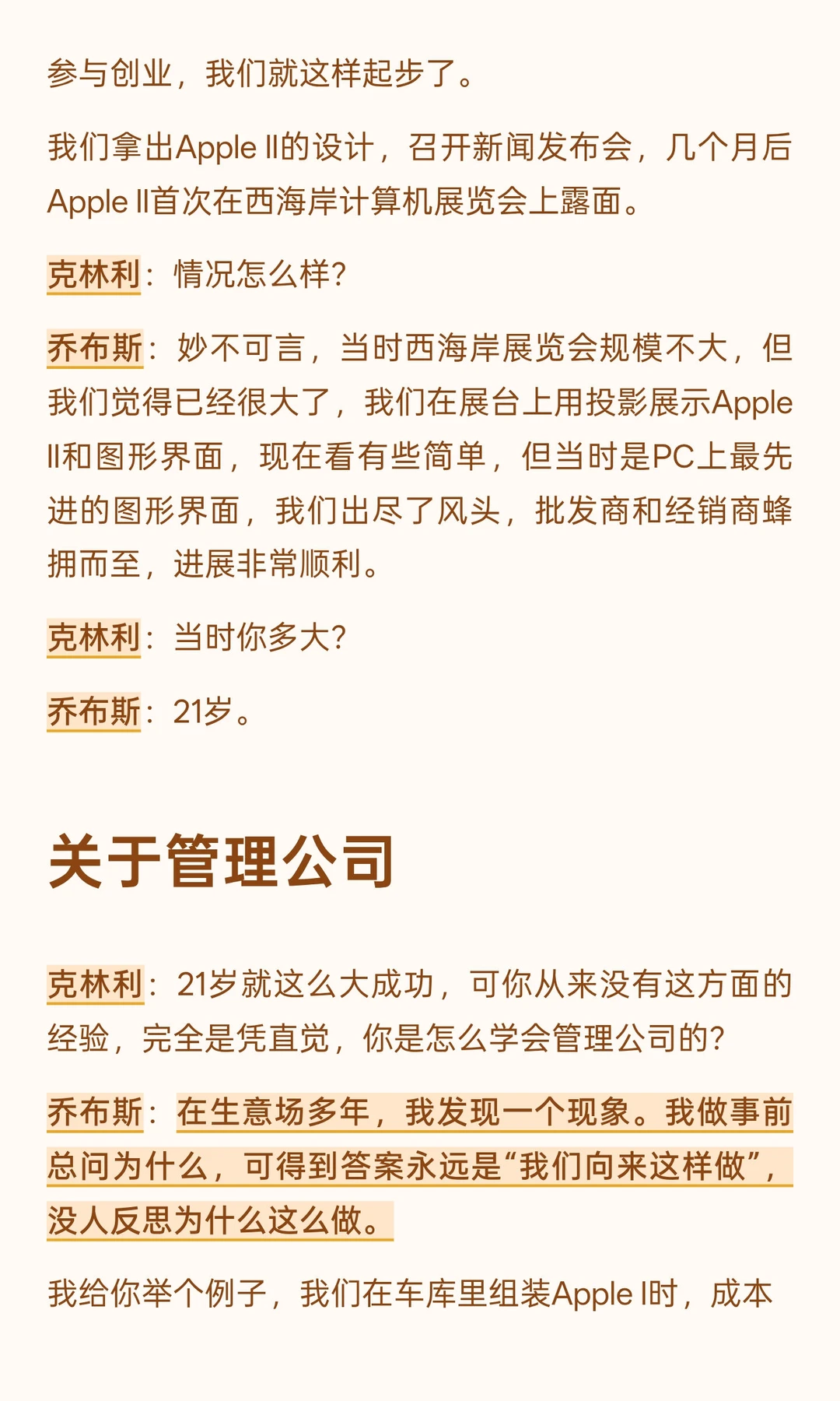 乔布斯:在生意场多年,我发现一个现象。我做事前总问为什么,可得到答案永远是“我们向来这样做”,没人反思为什么这么做。