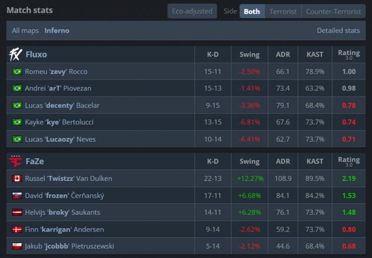 FaZe:karrigan、jcobbb、frozen、broky、Twistzz
