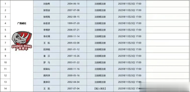 虎扑11月27日讯据此前深蓝体育官网NBL球队信息显示,广西威壮向官方提交了国内球员注册信息。