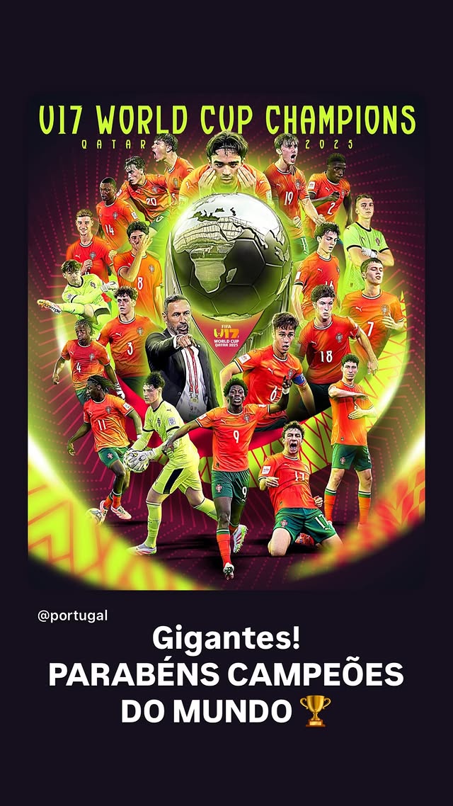 C罗祝贺葡萄牙首夺U17世界杯冠军:伟大!祝贺世界冠军!