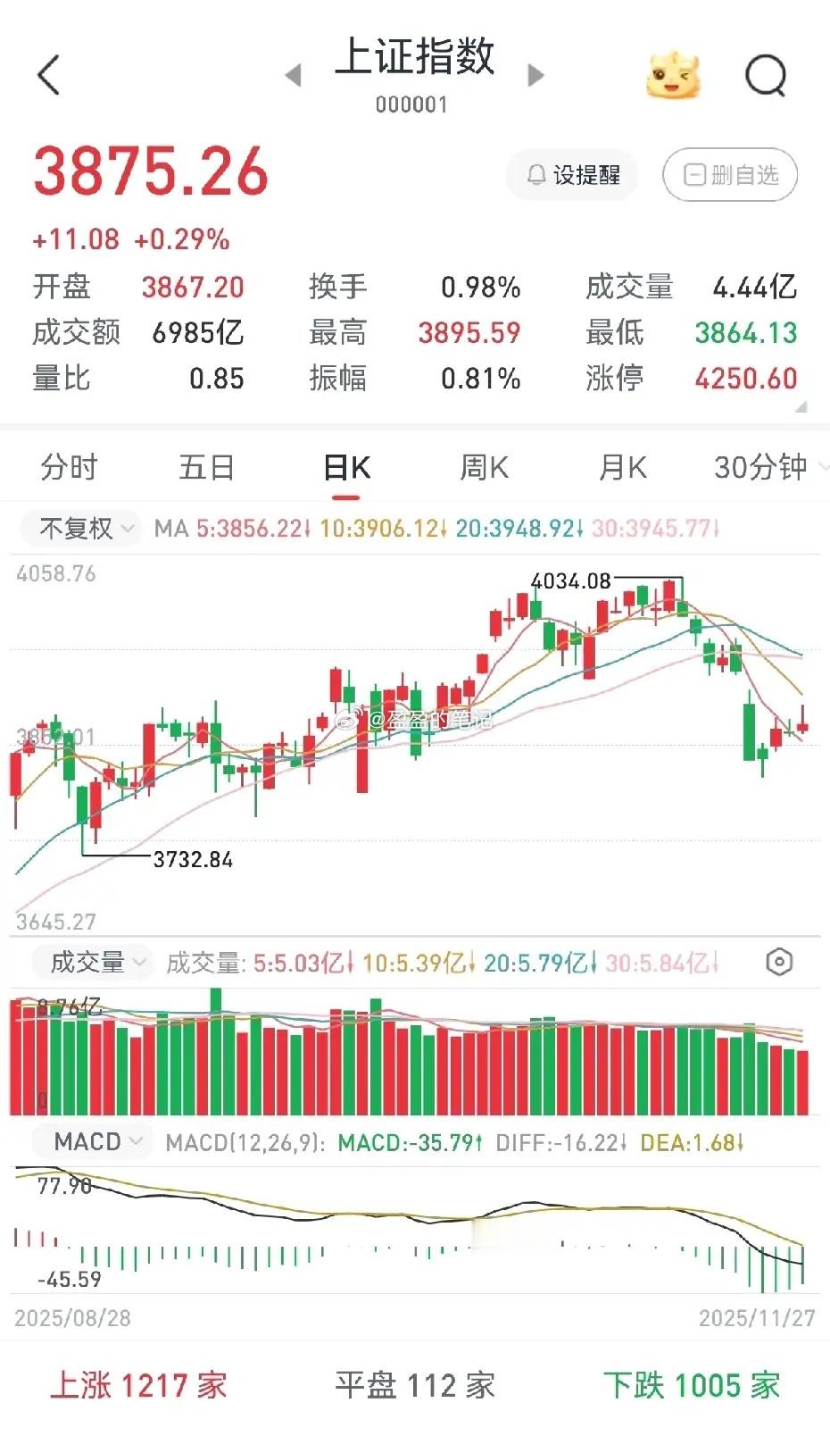 大盘再度冲高回落,此轮反弹结束了吗?今日大盘再度冲高回落,尽管指数以红盘报收,但日K线上已连续三天留有上影线。这三根上影线触动着投资者的神经,加之今日成交量仅1.71万亿,大幅萎缩,故而不少人觉得大盘此轮反弹已然结束。我的看法是:大盘此轮反弹尚未结束。明日大盘走势大概率仍会震荡上行。1、从时间层面分析,大盘自3040点起步,至4034点见顶,历经7个多月才完成五浪上升。当下大盘正处于ABC三浪调整阶段。通常而言,上升5浪约耗时150个交易日,那么ABC调整三浪怎么也得50个交易日吧?而如今大盘自出现4034点至今,仅过了10个交易日,所以我认为此轮反弹,或许在点位上上升空间有限,但在时间上还不充足。2、从技术角度分析,今日大盘虽冲高回落,但盘中高点与低点同步上移,况且今日收盘指数不仅收红,还站上了久违的5天均线。明日大盘指数只要在3835点上方运行,5天均线就会拐头向上,对大盘指数起到助推作用,这有助于大盘再次向缺口位置发起冲击。综上,我认为明日大盘指数向上运行的可能性较大。但盘中我们首先要留意本周三的低点3861点是否会被跌破,其次要关注明日成交量是否放大。以上为个人观点,仅供参考。