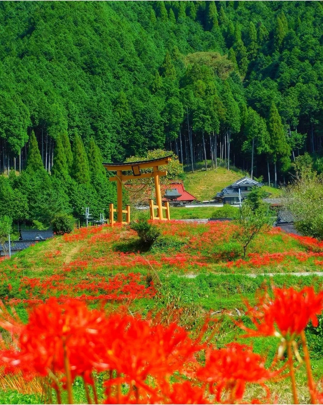 🌈彼岸花。彼岸花的美艳和热情,在和鸟居的映衬下反而显得有些柔美。这里田园般的神仙日子,也许就是我一直在回味的感觉吧。