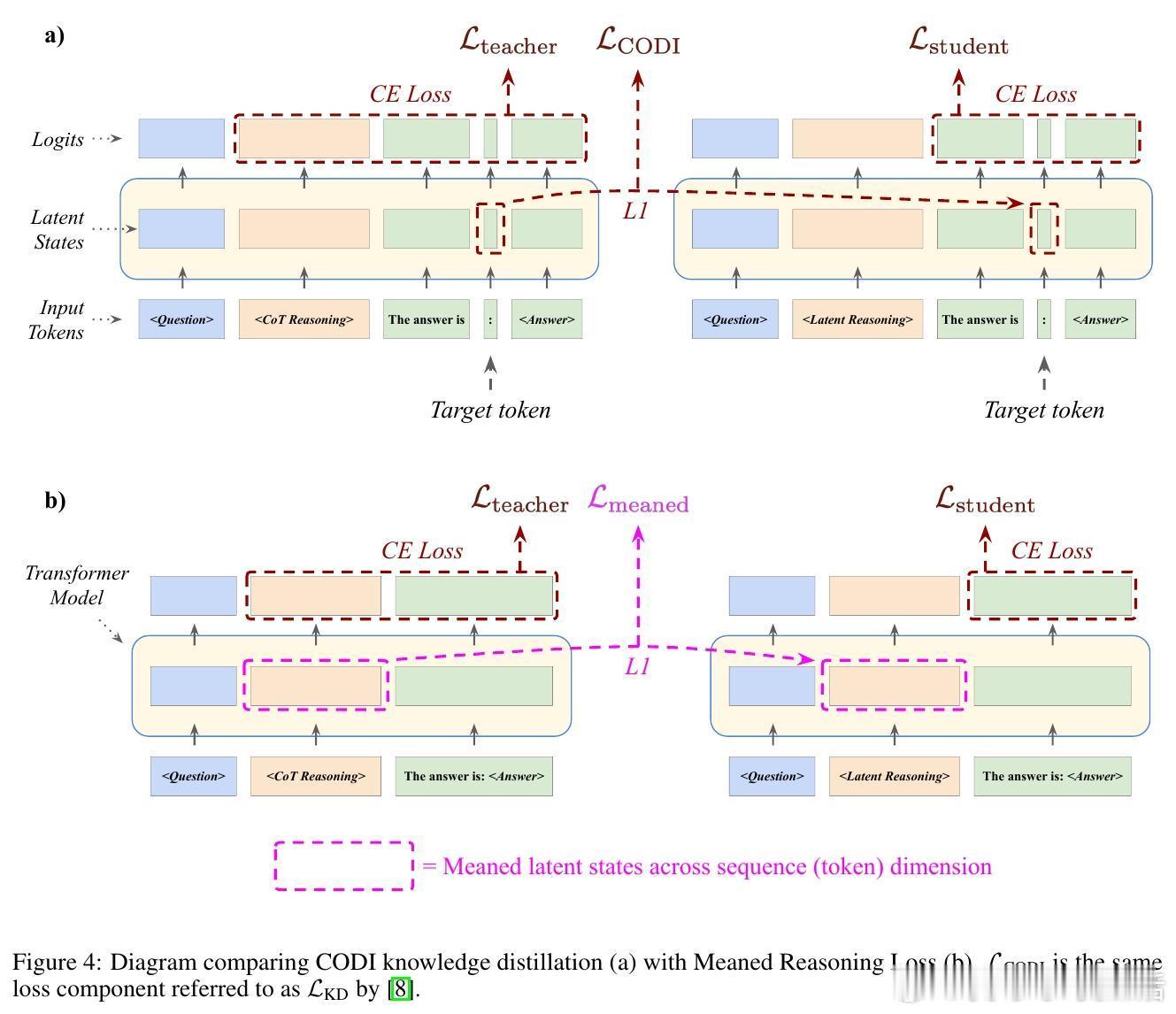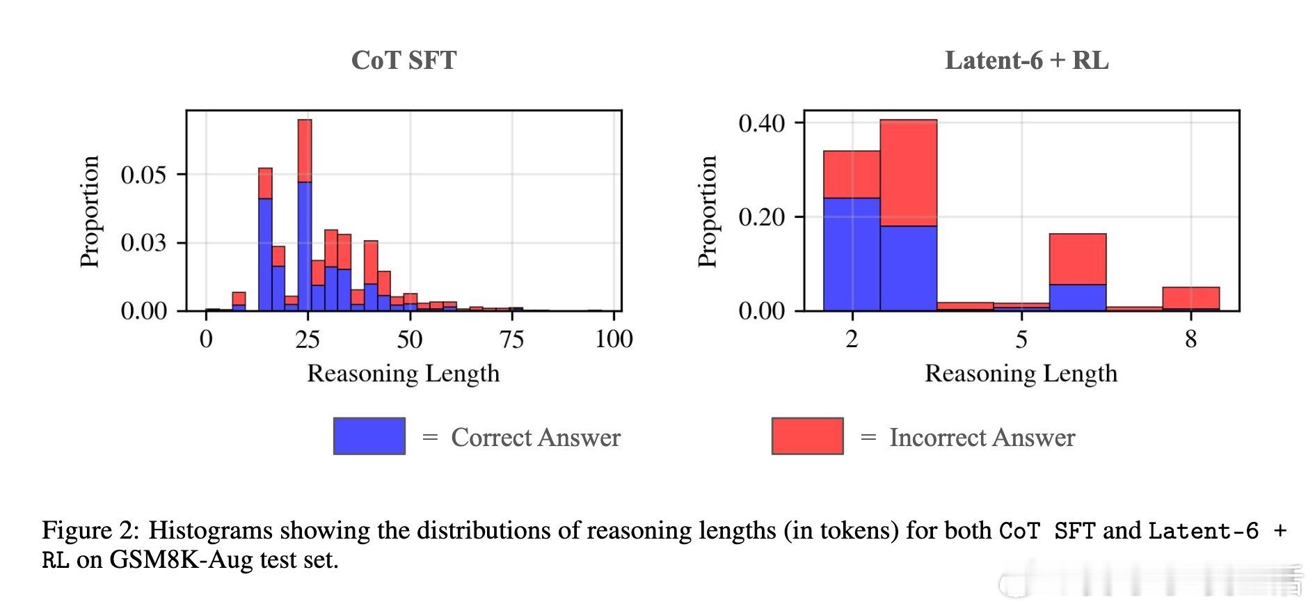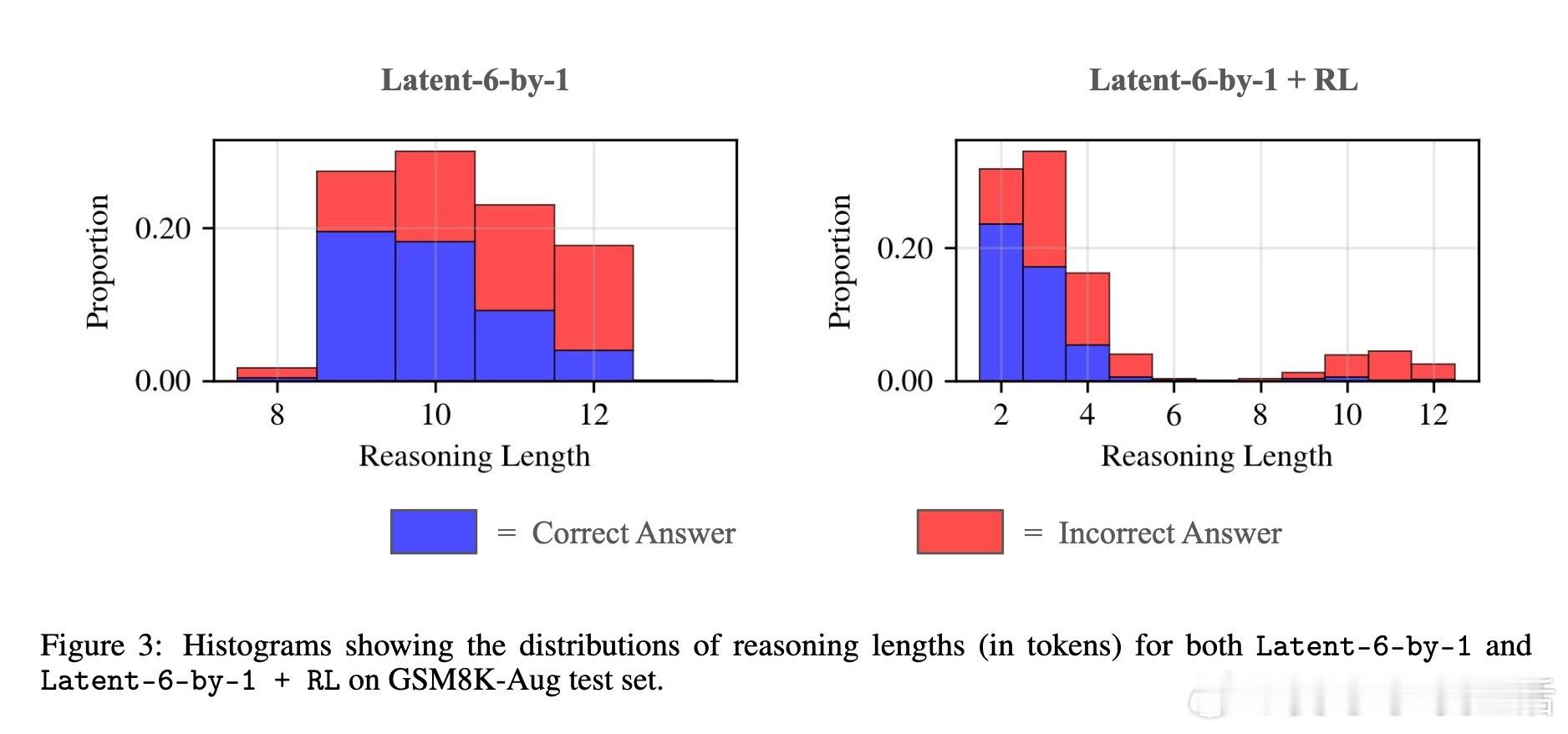 [LG]《Learning When to Stop: Adaptive Latent Reasoning via Reinforcement Learning》A Ning, Y Kuo, G Gomes [University of Virginia & CMU] (2025) 在大型语言模型的推理效率提升中,链式思维(Chain-of-Thought, CoT)虽有效,但存在“过度思考”导致计算资源浪费的问题,同时受限于以人类语言为媒介的推理方式。最新提出的“潜在推理”(Latent Reasoning)技术,通过直接将Transformer模型的隐状态传递作为推理过程,突破了语言符号的限制,实现了推理长度的大幅压缩。本文提出了一种自适应潜在推理方法,结合监督微调(SFT)与强化学习(RL),让模型能自主决定何时终止推理,动态调整推理长度。具体做法是为潜在推理模型增加一个二分类头,在每一步判断是否继续推理。强化学习阶段采用Group Relative Policy Optimization算法,通过正确性奖励、格式惩罚与相对长度奖惩机制,促使模型在保证准确率的同时最大程度减少推理长度。实验证明,基于Llama 3.2 1B和GSM8K-Aug数据集,经过强化学习优化的潜在推理模型相比传统CoT推理,推理长度平均减少52.94%,且准确率不受影响。这表明模型能够根据问题难度“少想多快”,或“多想以求精”,有效节约计算和内存资源。实验中还发现推理长度与错误率呈正相关,强化学习使模型倾向于对简单问题缩短推理过程,对难题延长思考时间。此外,文章探讨了潜在推理的知识蒸馏问题,尝试了多种损失函数设计(如Meaned Reasoning Loss和Intermediate Block Loss),但未能超越现有方法CODI,显示潜在推理知识蒸馏仍具挑战性,需未来深入研究。总的来说,这项工作展示了通过自适应潜在推理和强化学习,有望突破当前语言模型推理效率瓶颈,推动更智能、高效的模型设计。未来计划扩展至更多模型和任务,优化训练参数,尝试不同架构改进,并持续探索知识蒸馏技术。全文及代码详见:github.com/apning/adaptive-latent-reasoning 论文链接:arxiv.org/abs/2511.21581