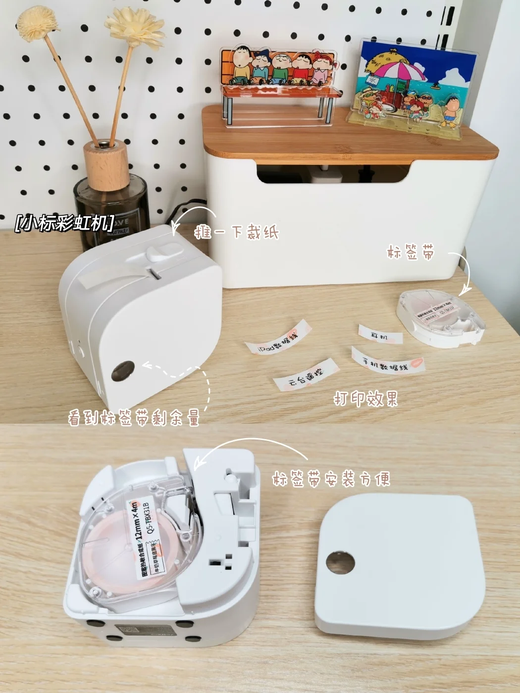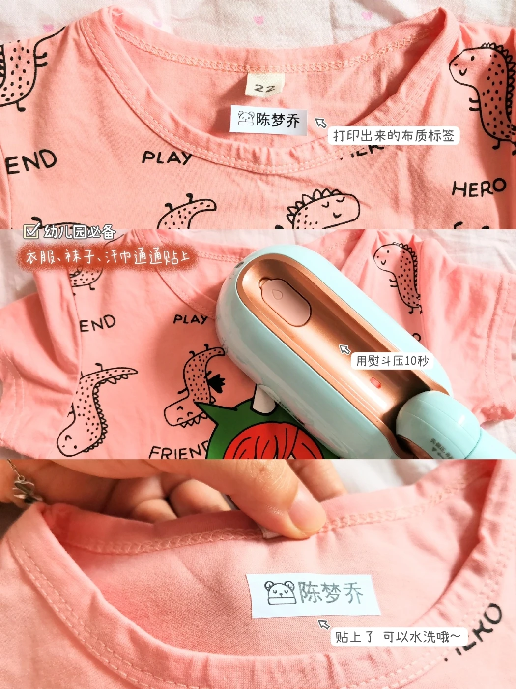 🧡标签打印机我用的是小标彩虹机,它的标签带有多款,用途多多~💯热敏打印的标签防水、防油、防刮擦,我贴在收纳盒上好耐用。布质烫印的太让我惊喜了,水洗💦不掉色,应幼儿园老师的要求,孩子回园的衣服都贴上名字,[赞R]好方便哇~还有夜光💫的标签带,贴开关上,熄灯也看得清,太赞啦~