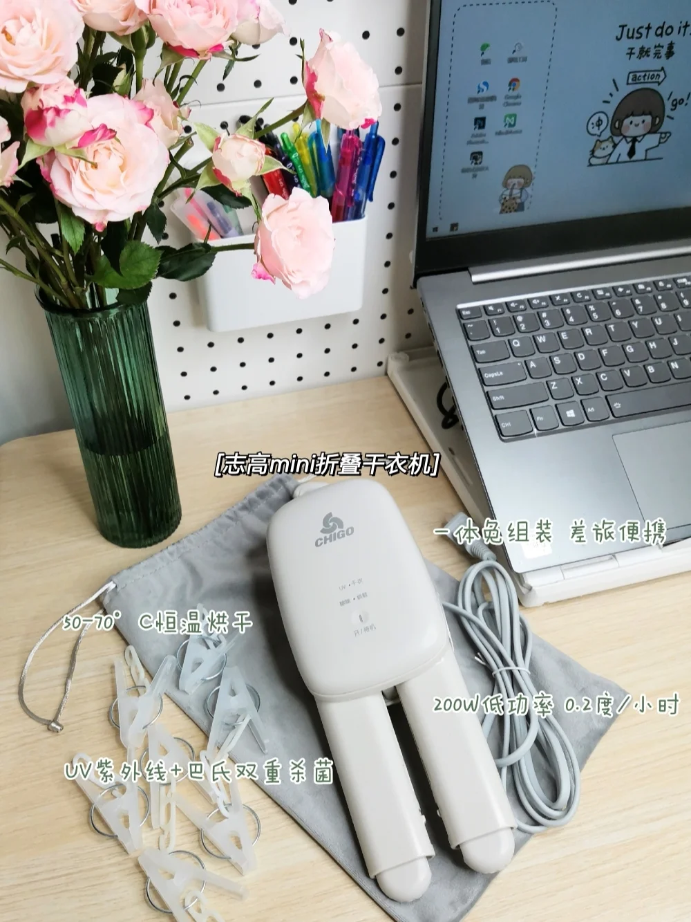 🧡下周要出差,入手了志高mini折叠干衣机,小小一个,放行李箱🧳一点不占地方~不仅可以烘干衣服👚,挂上夹子还可以烘袜子🧦、内衣裤,它带有UV除菌和除味,给鞋子👟烘干除味也ok!烘干速度快,又不耗电,功率200w,[派对R]宿舍党也可以用!