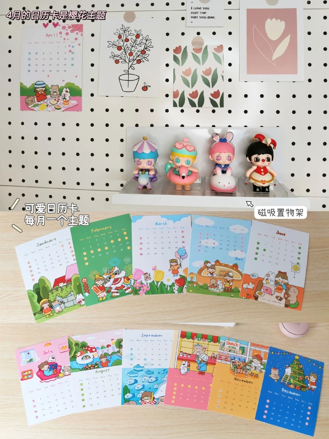 🧡拼夕夕入的可可爱爱的日历卡,一套只要💰1.72r,四舍五入等于不用💰!每个月一个主题,4月是樱花🌸主题,看着心情好好哇~