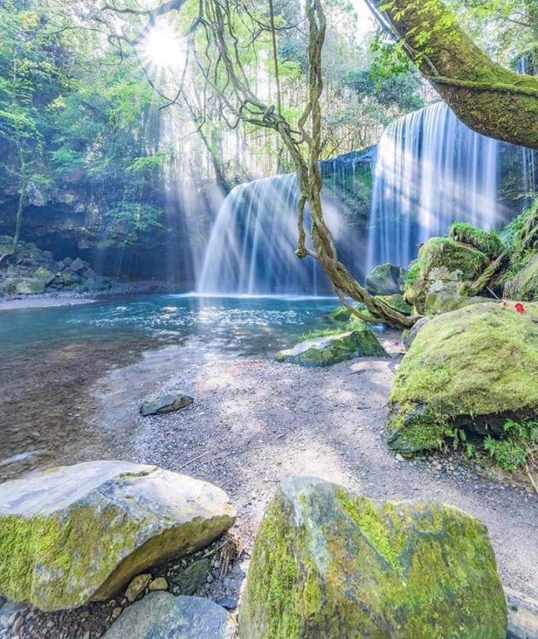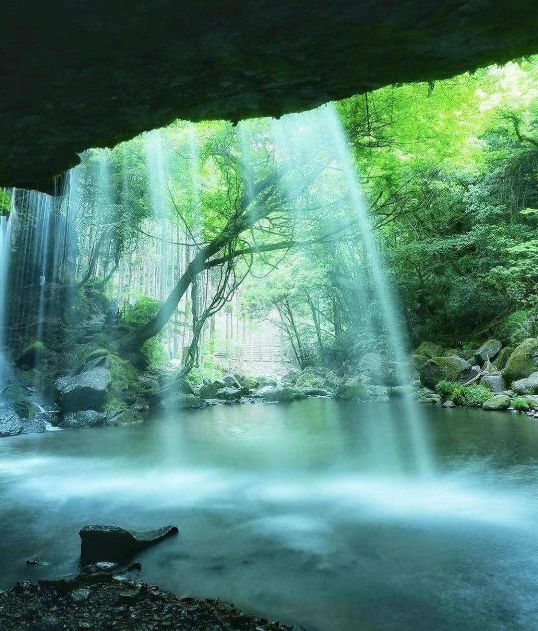 🎊景点名:锅瀑布 💌地址:熊本县阿苏郡小国町黑渕 🔍值得看: 🌈话不多说,大家看到这片瀑布的第一感觉,除了美和震撼,还有什么?嗯,我感觉好像水帘洞啊,这个瀑布可以绕到里面观看!除了不是像孙悟空一样飞进去!和水帘洞太像啦~ 🌈山间林中的远离尘世,丰富的负离子,也是我享受此地的原因之一! 🌈路上看到一块心形的石头地砖,小细节很暖心,据说还有几块哦,看到了感觉就是幸运的~ ❤️友情提示:到这儿的话公共交通不太方便 🎁特产推荐:想把熊本熊带回家[偷笑R] *图片源自网络