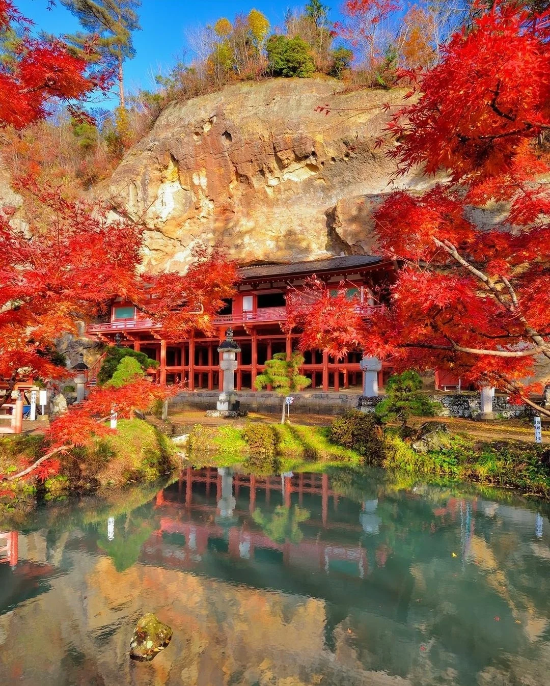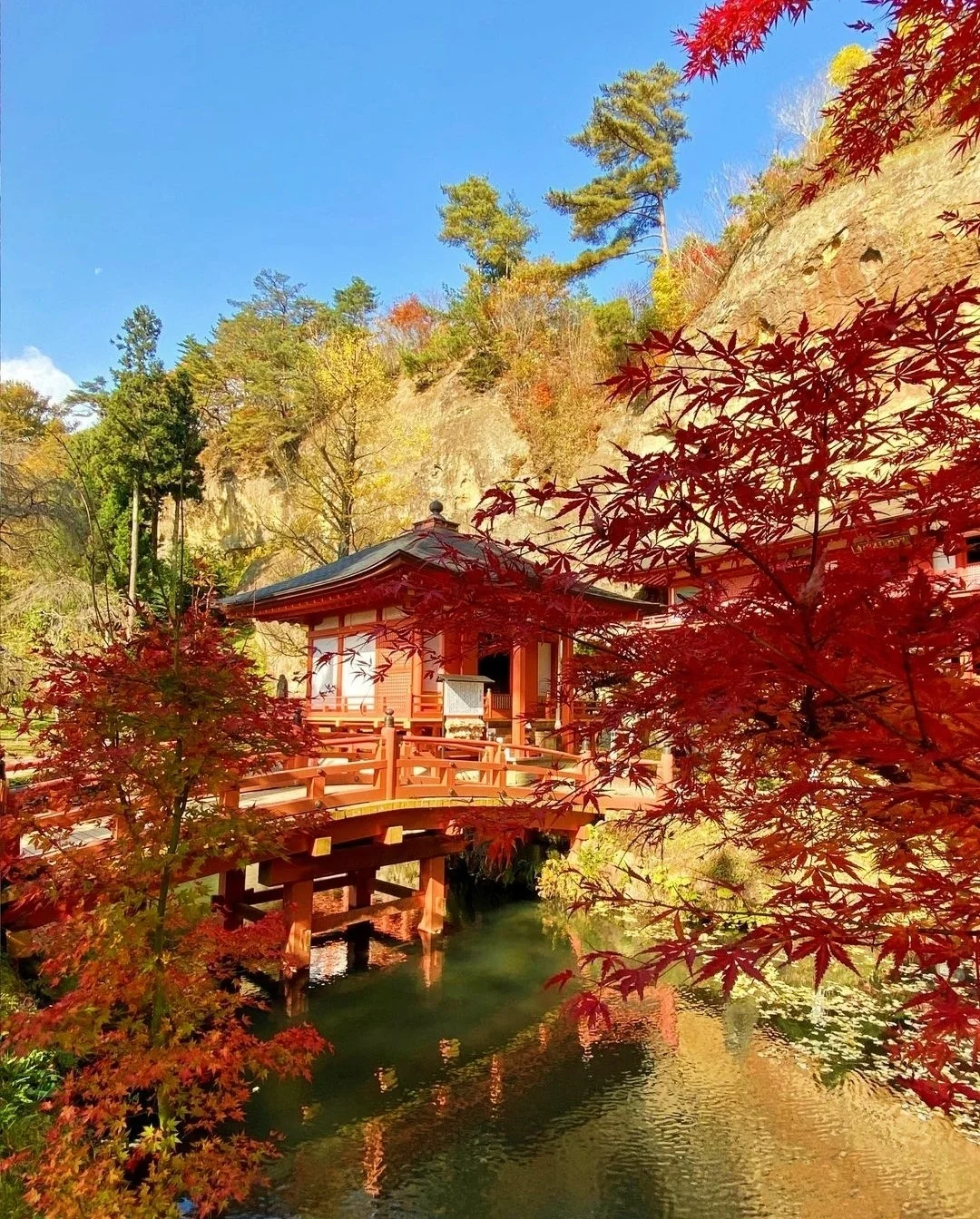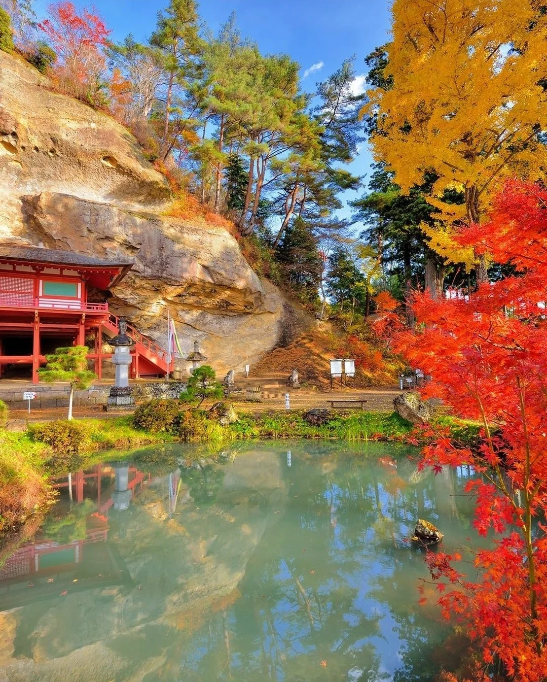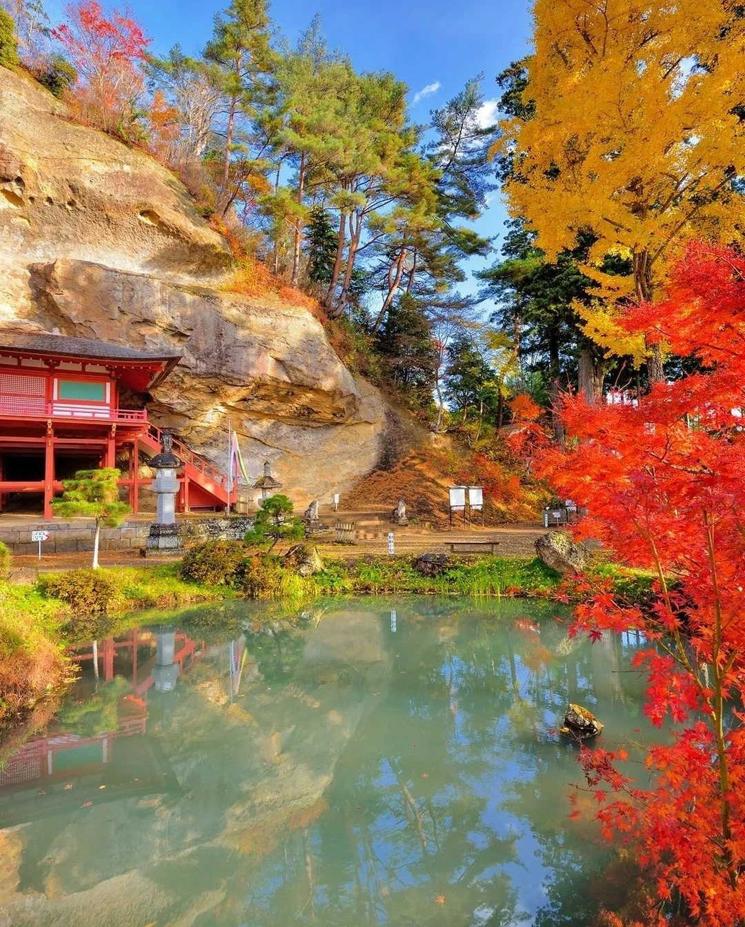 🎊景点名:岩手县平原町达谷窟毘沙门堂 💌地址:岩手県西磐井郡平泉町平泉北沢16 🔍值得看: 🌈我最深的感触是看到它依山而建吧。有智慧,有设计,很巧妙的建筑。有人说他是缩小版的清水寺,但我觉得还是不要轻描淡写的说相似吧~它就是毘沙门堂,一座依山岩而建的寺庙佛堂! 🌈我还感动于1200年的传承,1200年前的建筑啊,想古人的智与信仰,感动是不自觉的产生的~ 🌈看到图片里的色彩了吗?不管是铺满地面的银杏叶,还是红叶与枯黄,在蛤蟆池的倒影中,都更加让人沉醉啊! ♥️友情提示:岩手县可以说是净心之旅好去处,可以提早做个完整的路线哦! 🎁特产推荐:土汤木偶人形 *图片源自网络