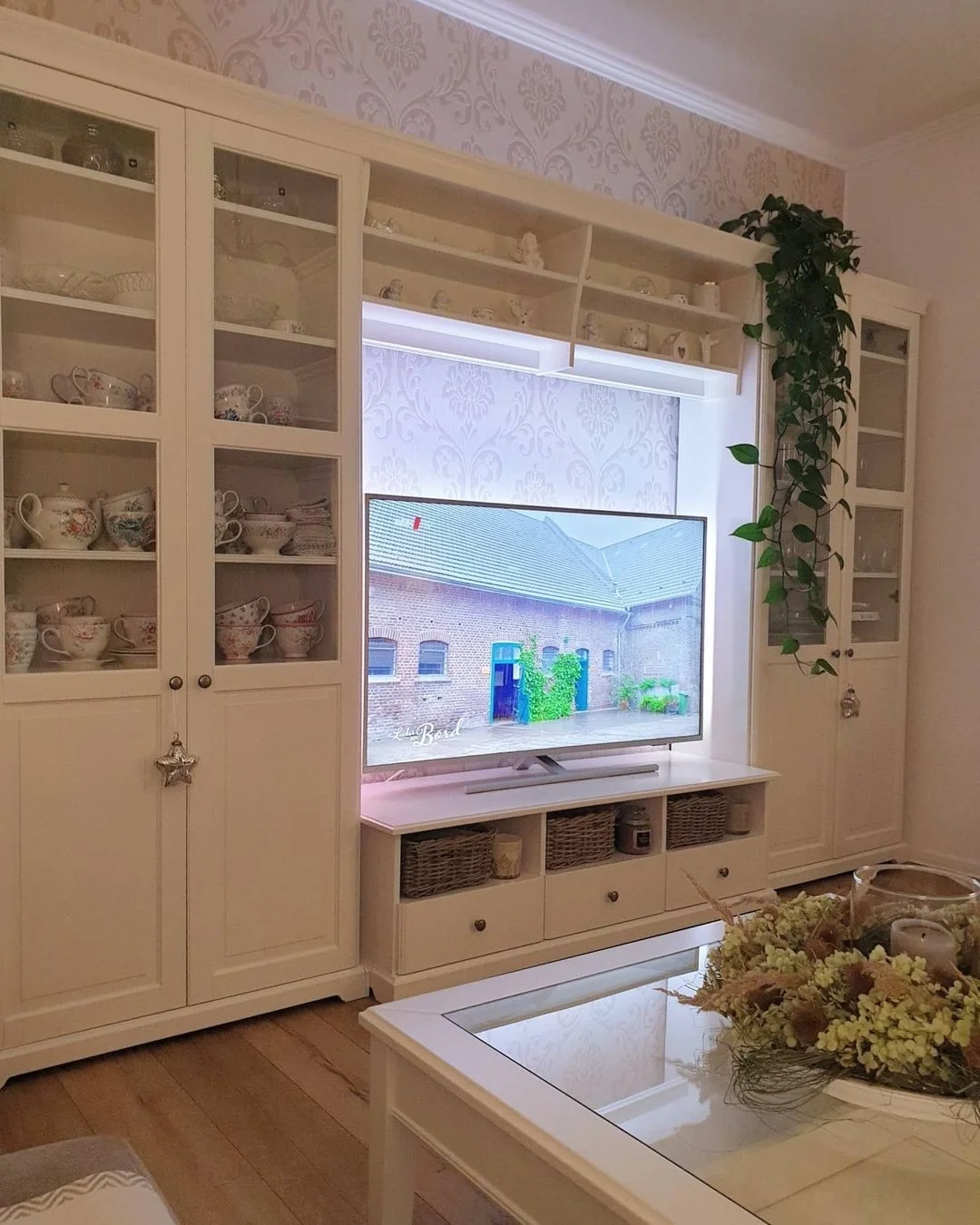 ☑️玻璃柜门电视柜,收纳杯子当展示柜