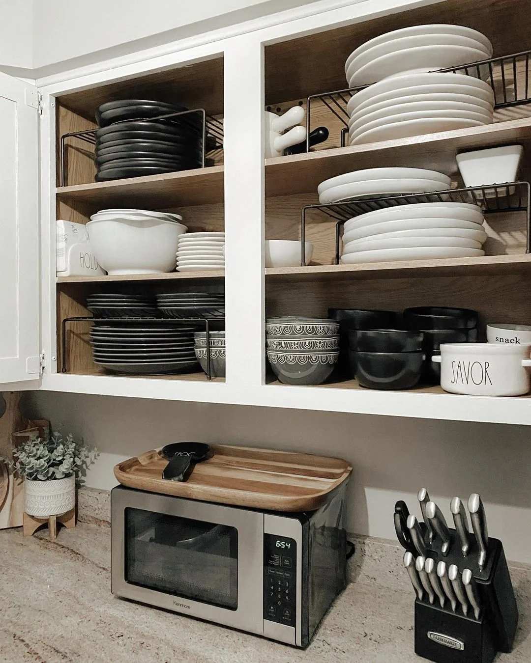 图5⃣️ 用碗碟架增加橱柜吊柜收纳空间