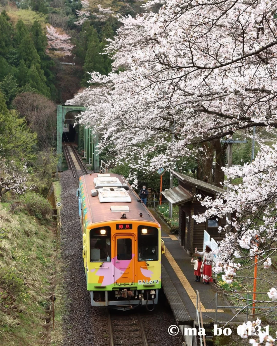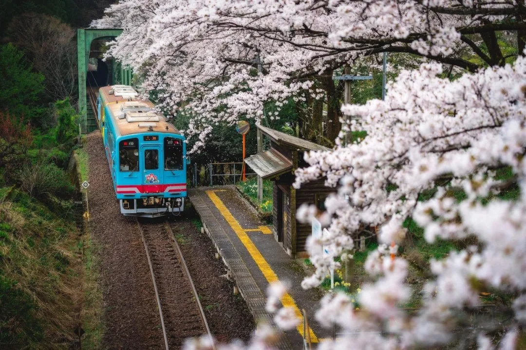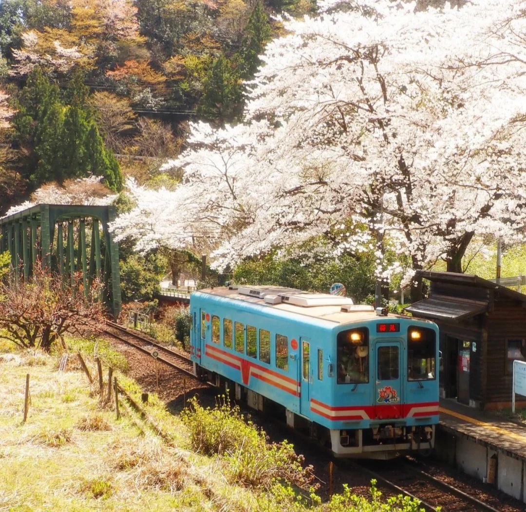 🎊景点名:樽见铁道 💌地址:日本岐阜县樽见铁道 🔍值得看: 🌈日本有名的铁路线有好多好多,各有各的特色,不得不感慨日本特色,各有各的特点,并不追求整齐划一和千篇一律。咳咳,又说多了 🌈樽见铁道本巢站正在售卖春季限定铁印,爱好收藏的铁印粉有的开心了! 🌈当然最最吸引人的是沿途的淡墨樱花,淡粉色和蓝色的电车相辉映,一片岁月静好,明媚时光的感觉~ 🌈悄悄地说一句个人喜好,我喜欢从隧道一端看车辆逐渐开来的样子,一种等待终于有了着落的感觉、一种柳暗花明又一村的开心、 ♥️友情提示:要拍好看的照片,也要注意安全!不要外禁止区域内行动[笑哭R]