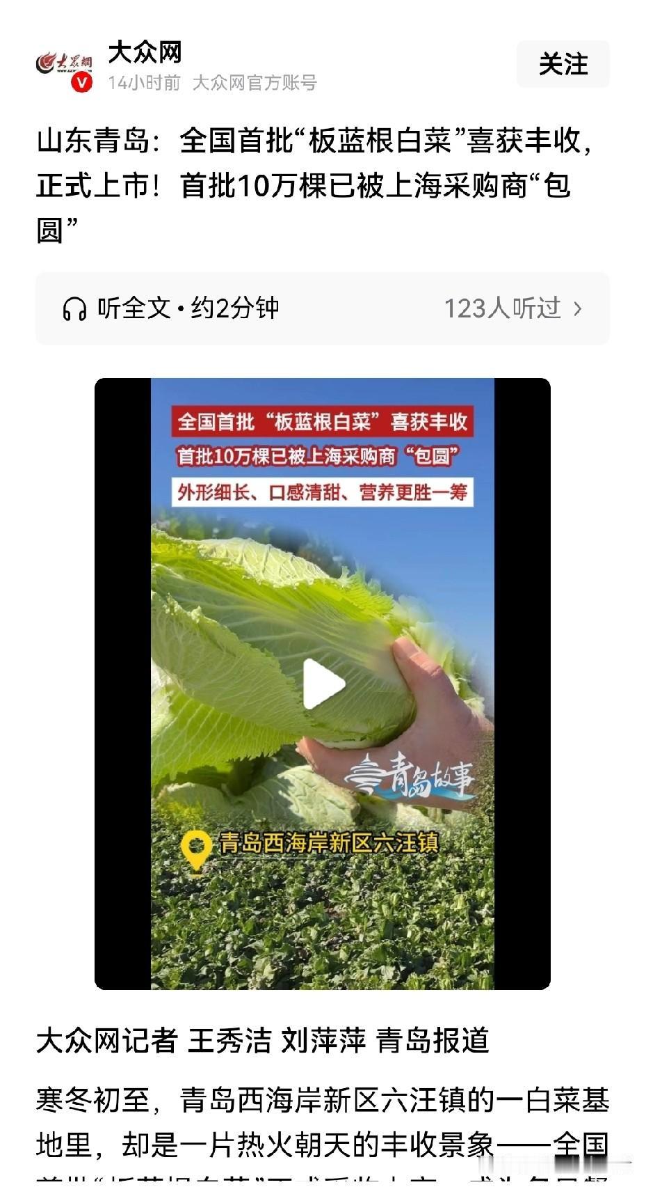 青岛因为白菜三天内两次上新闻! 两次都是因为白菜不再是白菜价。 央视报道的一个是欺世盗名,一个是否能名副其实? 青岛胶州大白菜是国家地理标识产品,从古至今都是稀有产品,并且还因为不是所有的胶州大白菜都能成为“胶州大白菜”而闻名,不仅仅是品种这单一因素,还有限定的特殊区域种植,水源要求等等,才能成为真正的能打上地理标识的“胶州大白菜”。 而本地其他区域的白菜,虽然品种一致,也不允许使用胶州大白菜的专用标识,更是不会卖出100多元的天价,正常也就10多元一颗。 就因为它独特的魅力,让一些电商动了歪脑筋,用一颗不知道产地的大白菜,在自己的网页却是国家地理标识的胶州大白菜,收到的货也没有任何产地信息,记者找到发货地,却是菜市场随机发货。 保护自己地理产品,不知道青岛为什么无动于衷,却要央视出手,如果不抓紧治理,几百年积累口碑的胶白,恐怕会毁在这代人手里。 另外一个大白菜,却是利用科技改变生活,任谁也想不到白菜有一天可以和板蓝根合体,在吃菜的同时,就们预防和改善感冒症状了,也是抓住了消费者的心理,药食同源,健康饮食。 还是希望青岛的这两棵白菜能够越走越远,不要辜负大家的期望! 白菜 白🌸菜