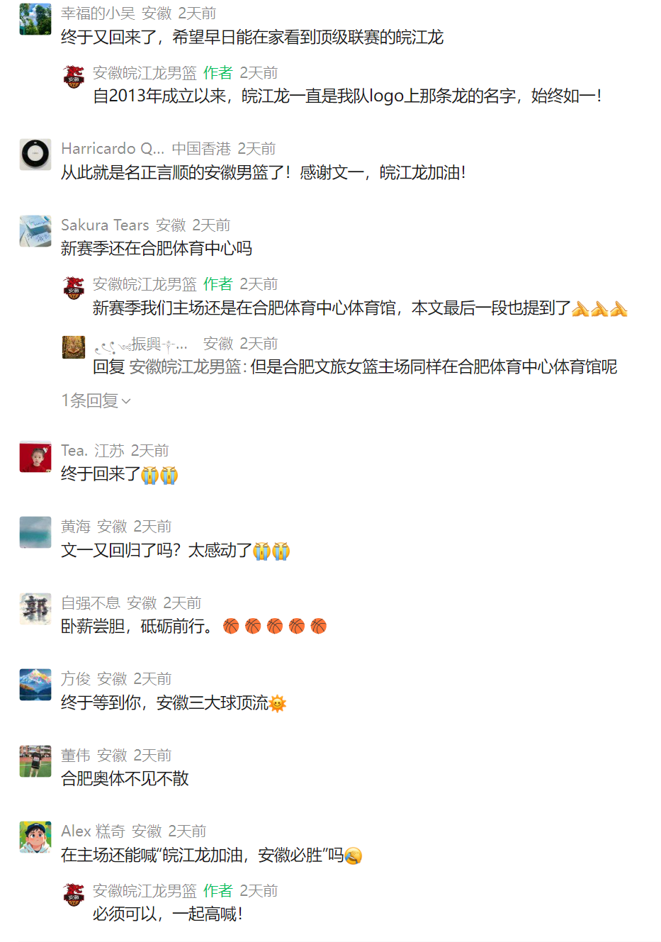 “皖江龙”之名,早已深植安徽篮球土壤。俱乐部负责人揭秘,这一名称源自2013年俱乐部成立时便启用的队标图腾——那条象征力量与荣耀的龙。“如今将‘皖江龙’纳入球队正式名称,是希望以这份延续十二载的精神内核为根基,为合肥、为安徽打造一支经得起时间考验的百年篮球俱乐部。”