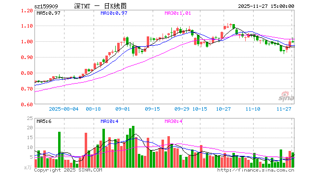 11月27日,TMT50ETF(159909)跌0.50%,成交额742.29万元。当日份额减少250.00万份,最新份额为6.02亿份,近20个交易日份额增加0.00份。最新资产净值计算值为5.97亿元。