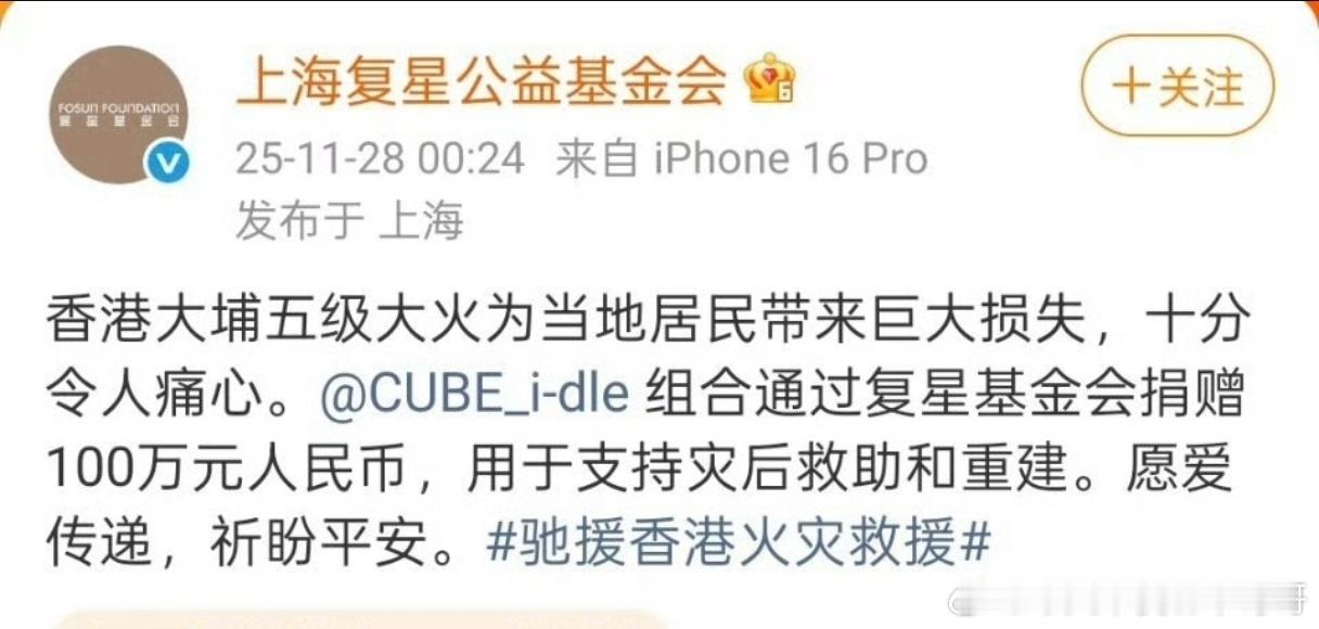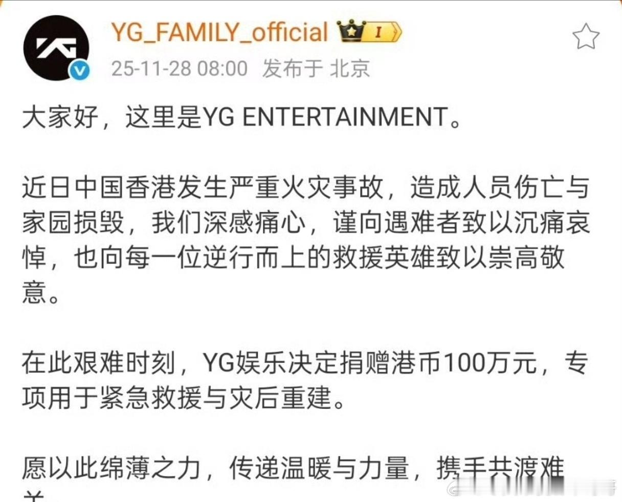 SM、YG等韩娱公司&艺人为此次香港火灾捐款汇总
