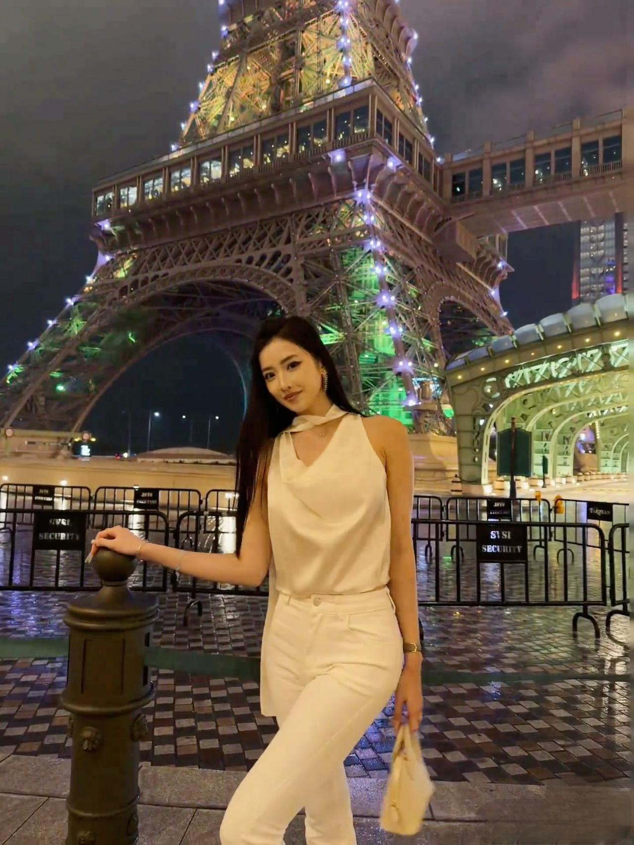 风裹着巴黎的松弛感,从埃菲尔铁塔尖儿飘到裙摆边。白裙和街景撞了个温柔的满怀,连时