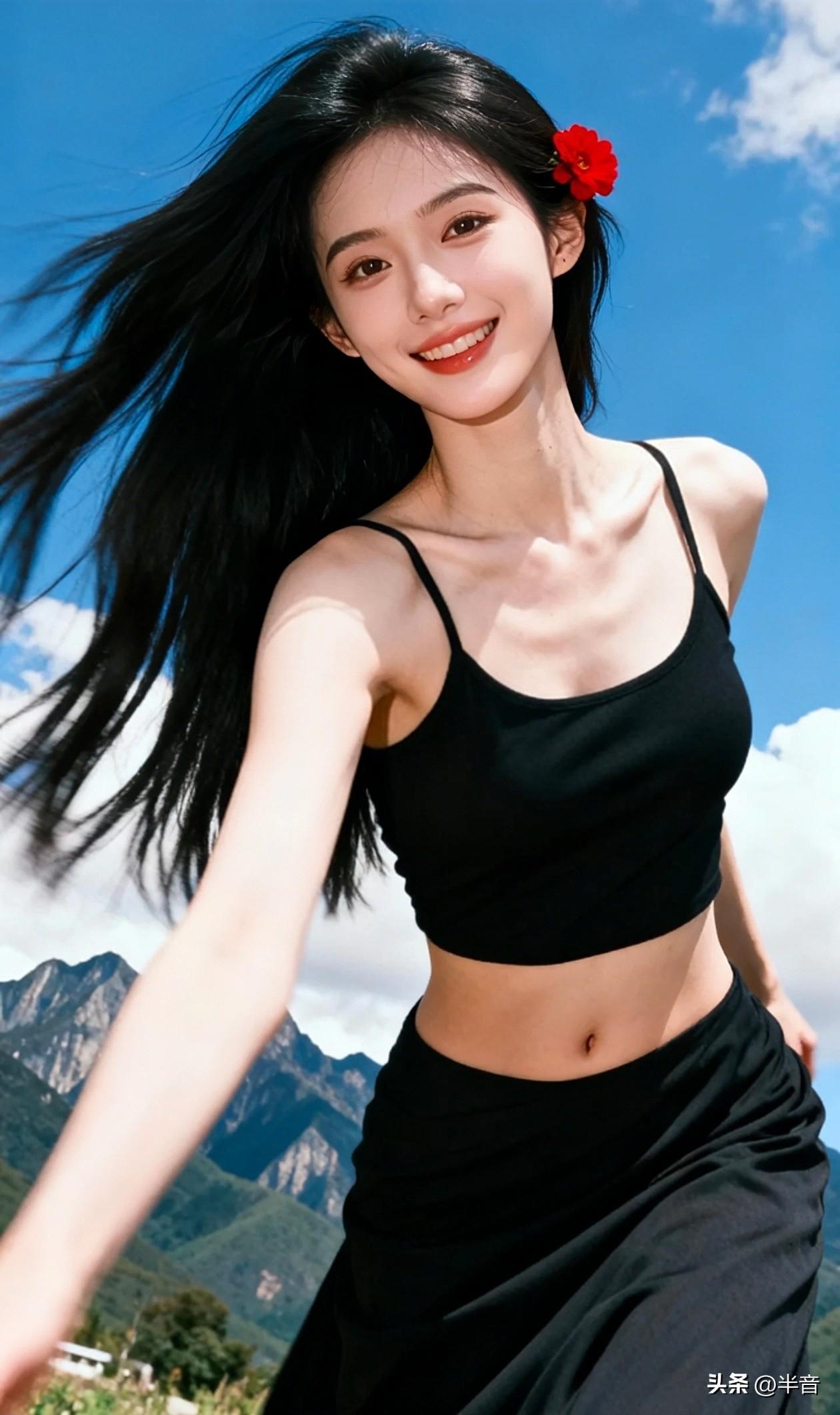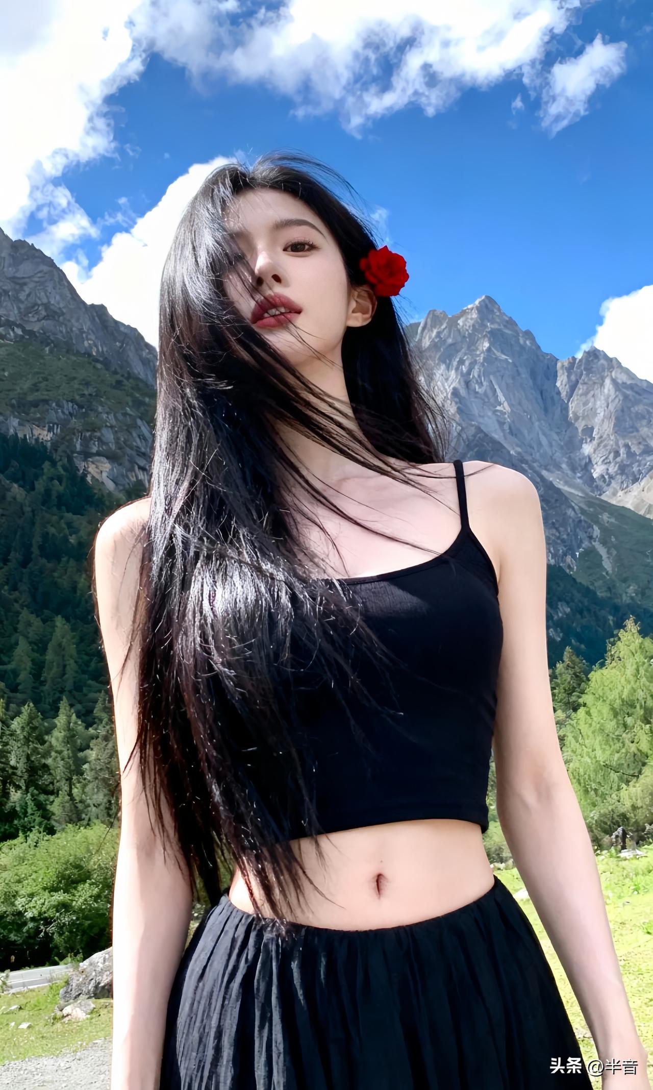 山风轻拂发丝 长发及腰的甜系少女 发间一朵小红花点缀💐 高级感穿搭,温柔风穿搭。