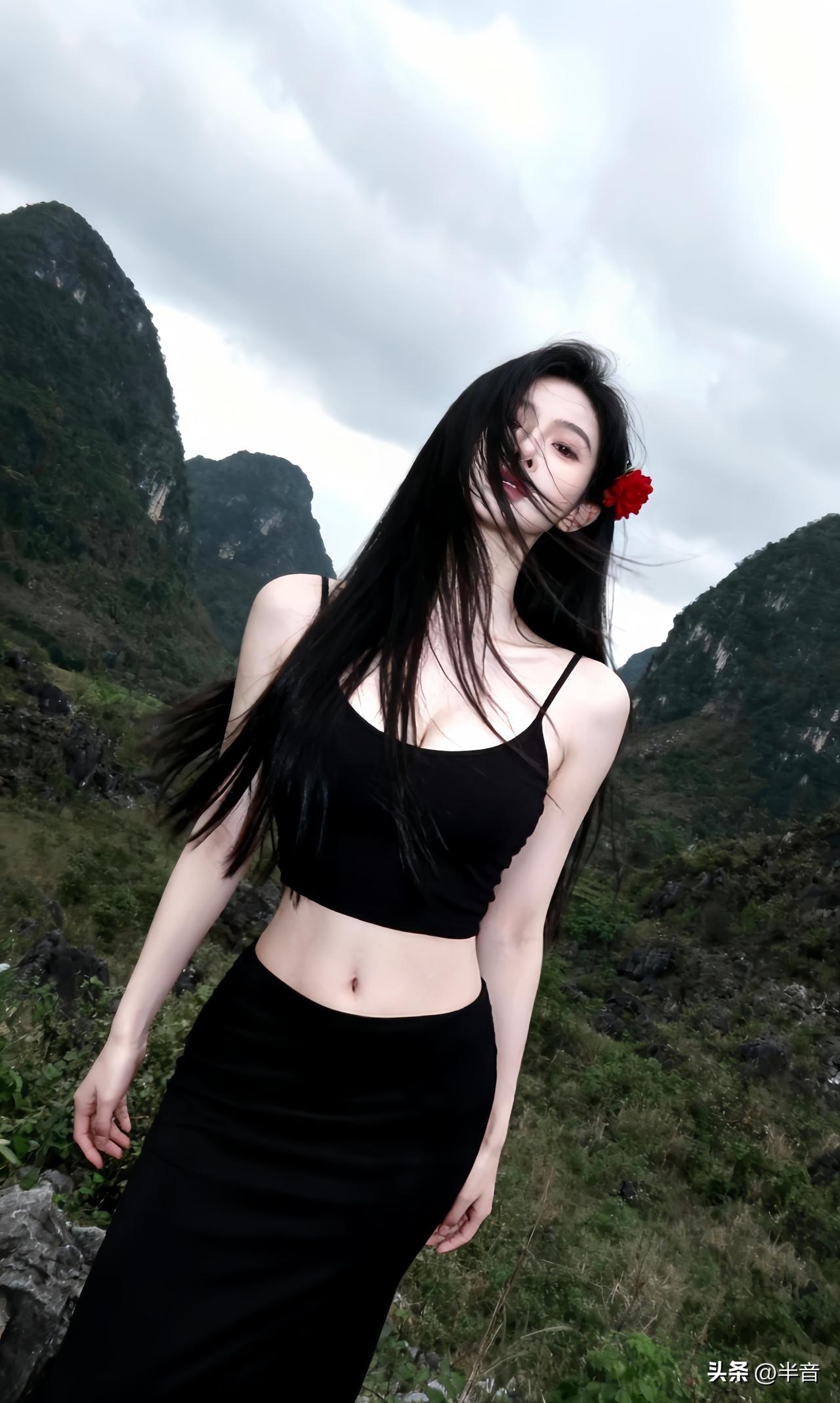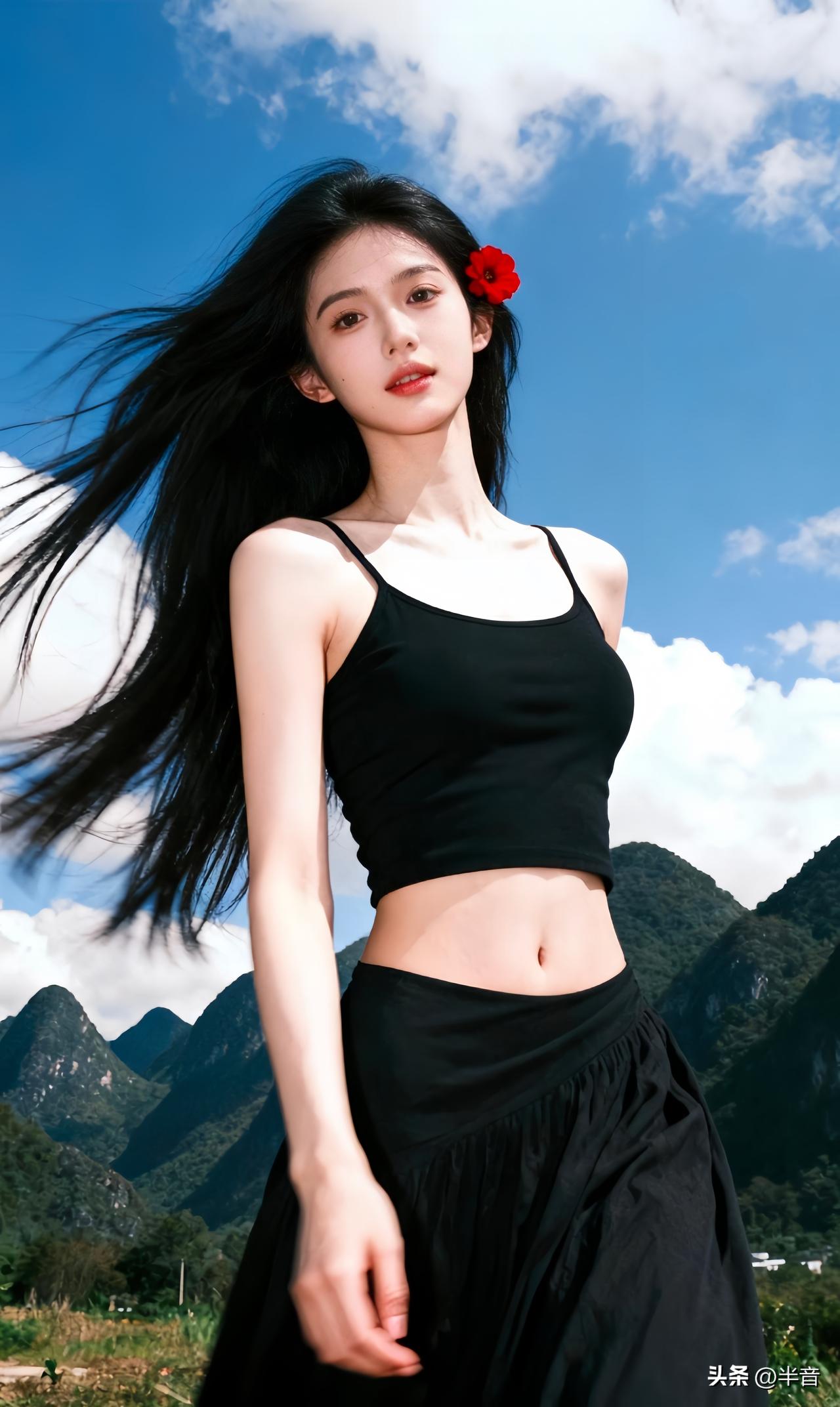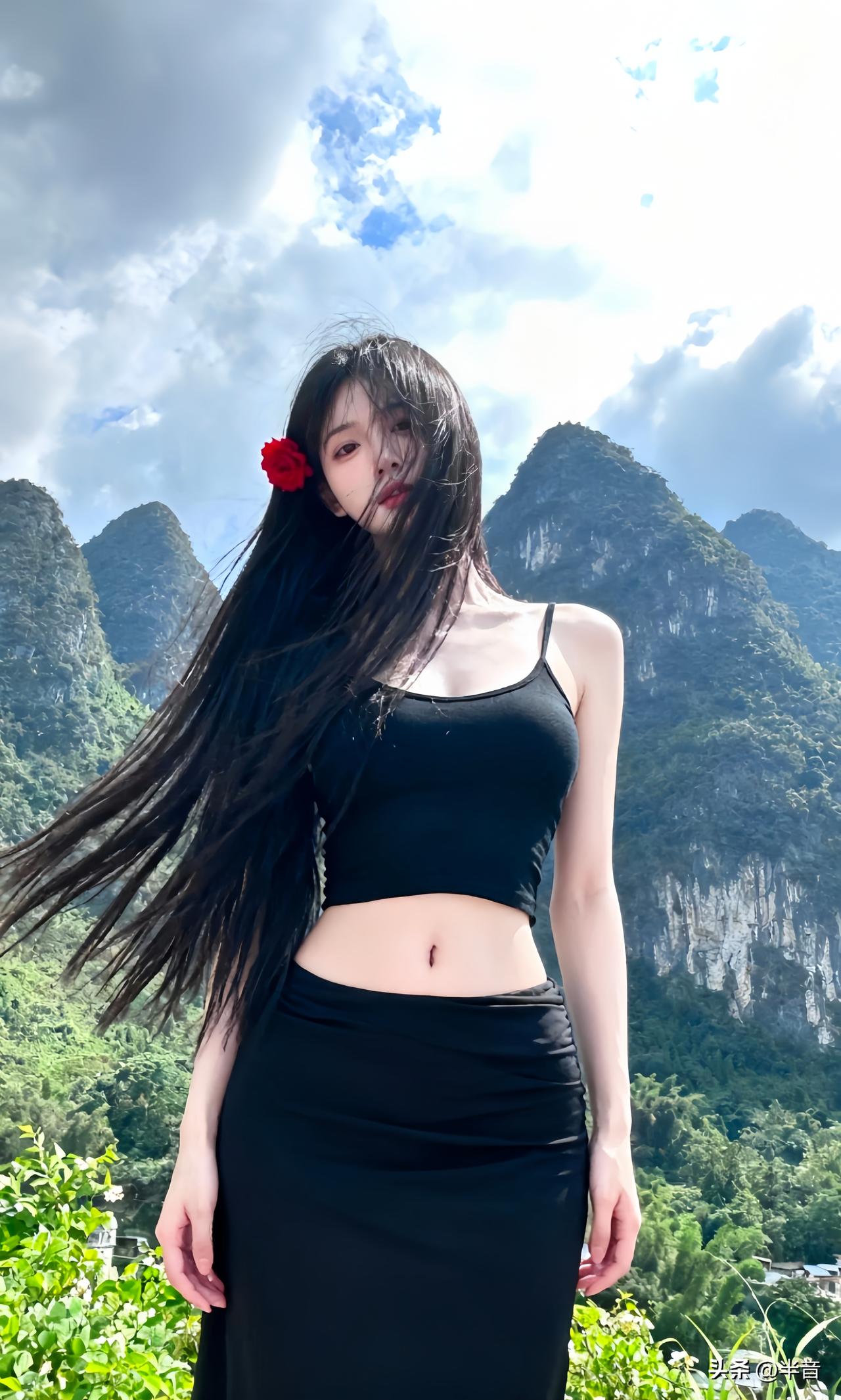 山风轻拂发丝 长发及腰的甜系少女 发间一朵小红花点缀💐 高级感穿搭,温柔风穿搭