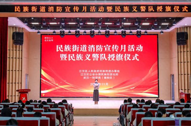 如何将安全的种子深植青少年心中?如何织密基层社会治理的防护网?11月27日,江汉区民族街道在一初学苑(南校区)举行消防宣传月活动暨民族义警队授旗仪式,通过一场沉浸式的安全教育活动和一支新生群防力量的组建,为辖区平安建设注入新动能。