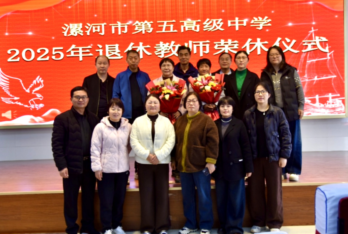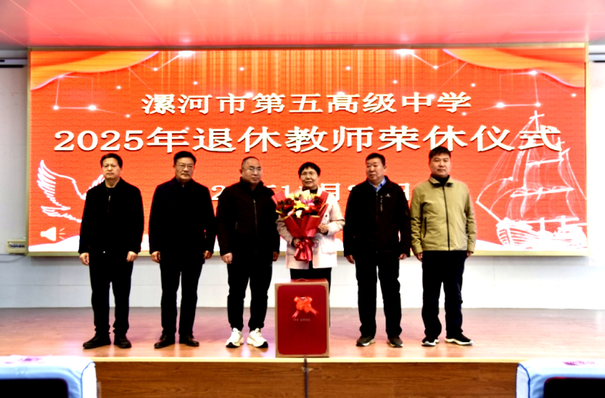 11月27日,漯河市第五高级中学校长孙发成带领校领导班子成员及教师代表,为2025年七位光荣退休教师举行了一场温馨而庄重的荣休仪式。大家怀着崇敬与不舍,共同回顾那些熠熠生辉的教育岁月,致敬这些教育事业忠诚的守护者。