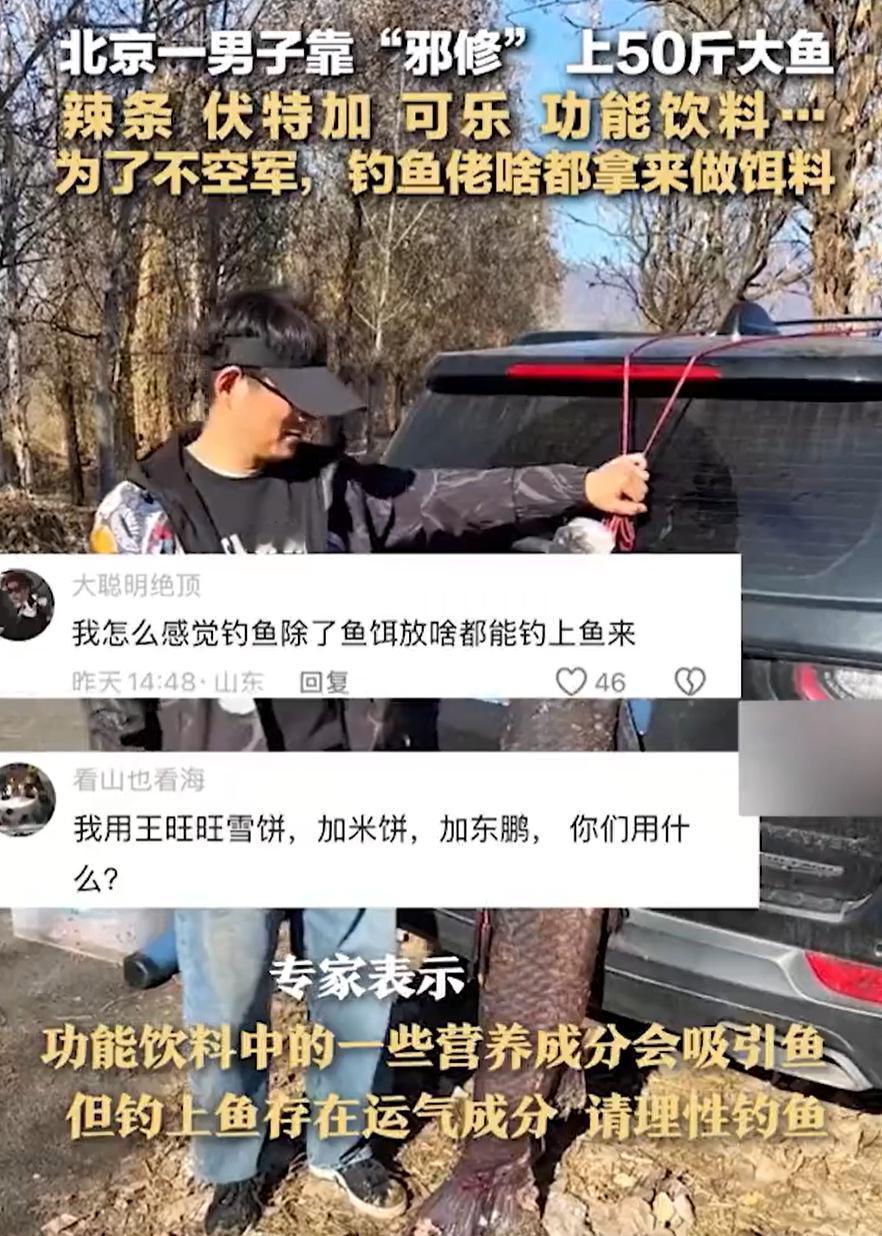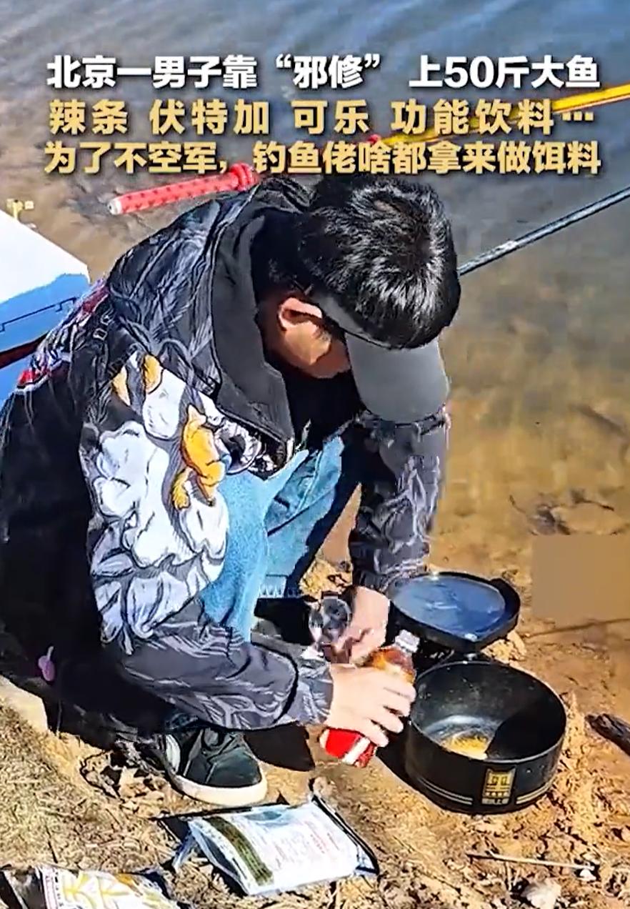 “这下解释不清了!”北京,男子在河边蹲了半天,最后竟钓上来一条五十斤的大鱼。为了炫耀,他干脆一把扛在肩上,乐呵呵地沿着河岸走,见人就显摆。谁都忍不住问他:这么个大块头,你到底用的什么饵?结果他的回答把大家都整不会了 男子表示,他没用什么高级商品饵,更不是传统鱼食,而是自己捣鼓出来的一套“邪修子”,辣条剪碎了泡着,加上功能性饮料,掺点儿伏特加,最后还倒了半瓶可乐。这几样东西单拎出来,没一个像是能钓鱼的,可混在一起,偏偏就把那条大家伙给引上钩了 很多人一听可能觉得胡闹,但这老哥不是头一回这么干了。他说平时就爱琢磨这些旁门左道,家里厨房的边角料、冰箱里喝剩的饮料,都能变成他鱼箱里的秘密武器。用他的话说,鱼也跟人一样,偶尔换个口味,说不定就心动了 其实很多人钓鱼喜欢追最贵的料、最新的技巧,感觉装备往上堆一点就能让鱼更尊重自己,但贵的真不见的就是对的 钓鱼里有个常识,味型到底准不准,从来没有绝对答案。有些人在水边研究半天,还没等鱼思考,他自己先纠结完了。有些人心态轻松,搞一套自己舒服的方式,反而容易有收获 鱼对味道的反应本来就受水温、状态、食性影响,很多时候不是公式算出来的,更多靠一点判断一点运气,再加一点愿意折腾