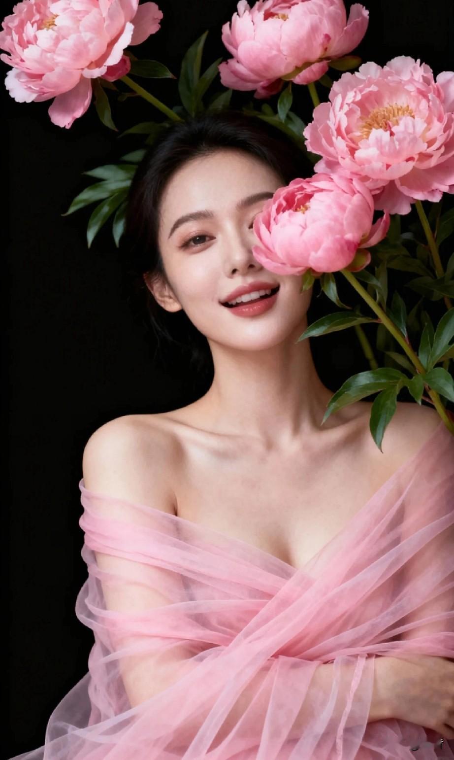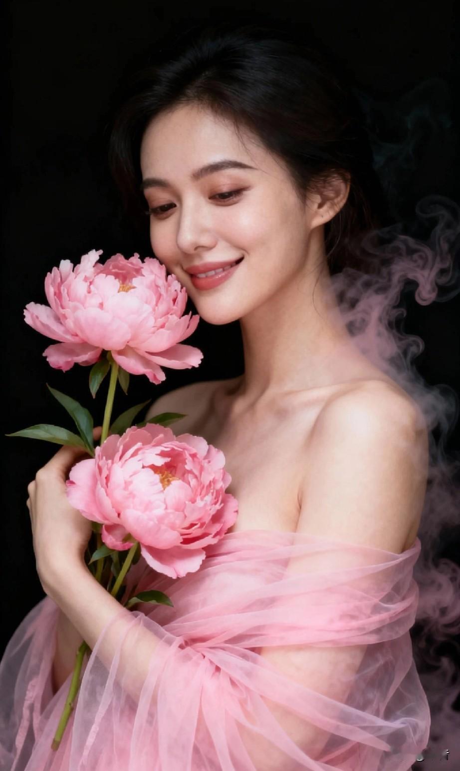 夜墨染丹色,人面胜花浓 轻纱漫舞时,一笑万古春 “是花成了精,还是人醉了花?”