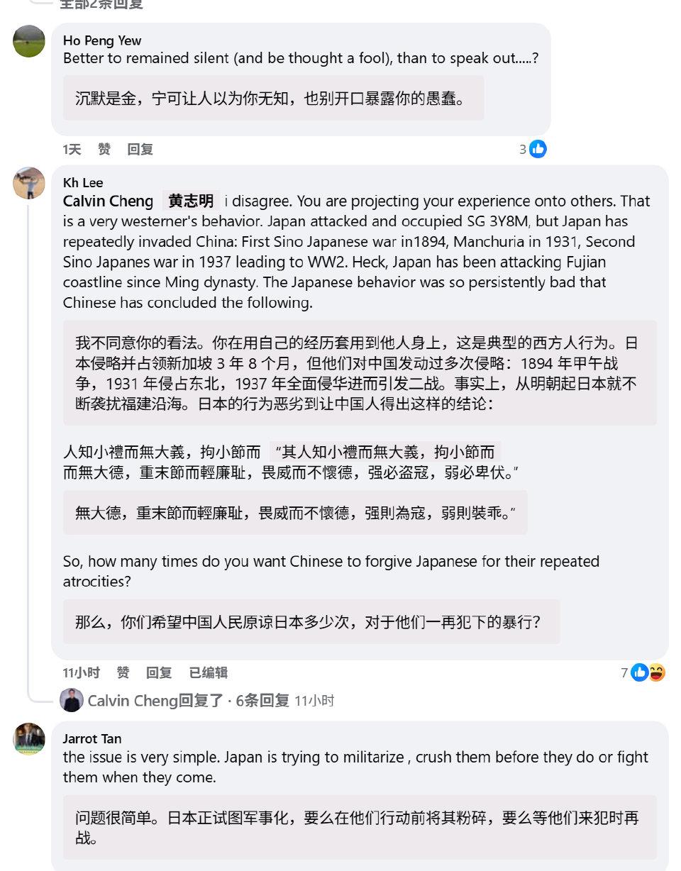 坡县网友的评论明显更理智一些,日本在试图军事化,不把日本军国主义的火苗灭掉,所有的亚洲国家都会受到威胁,不止是中国,但凡是个正常人都会知道,日本对亚洲各国一直虎视眈眈,由于身处地震频发的小岛,他们急需要扩张领土,亚洲真正需要做的是团结一致对抗日本军国主义,而不是与敌人同仇敌忾