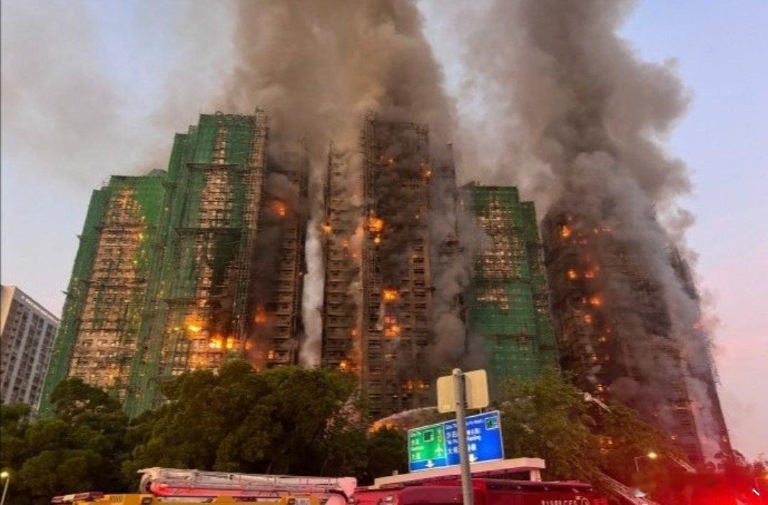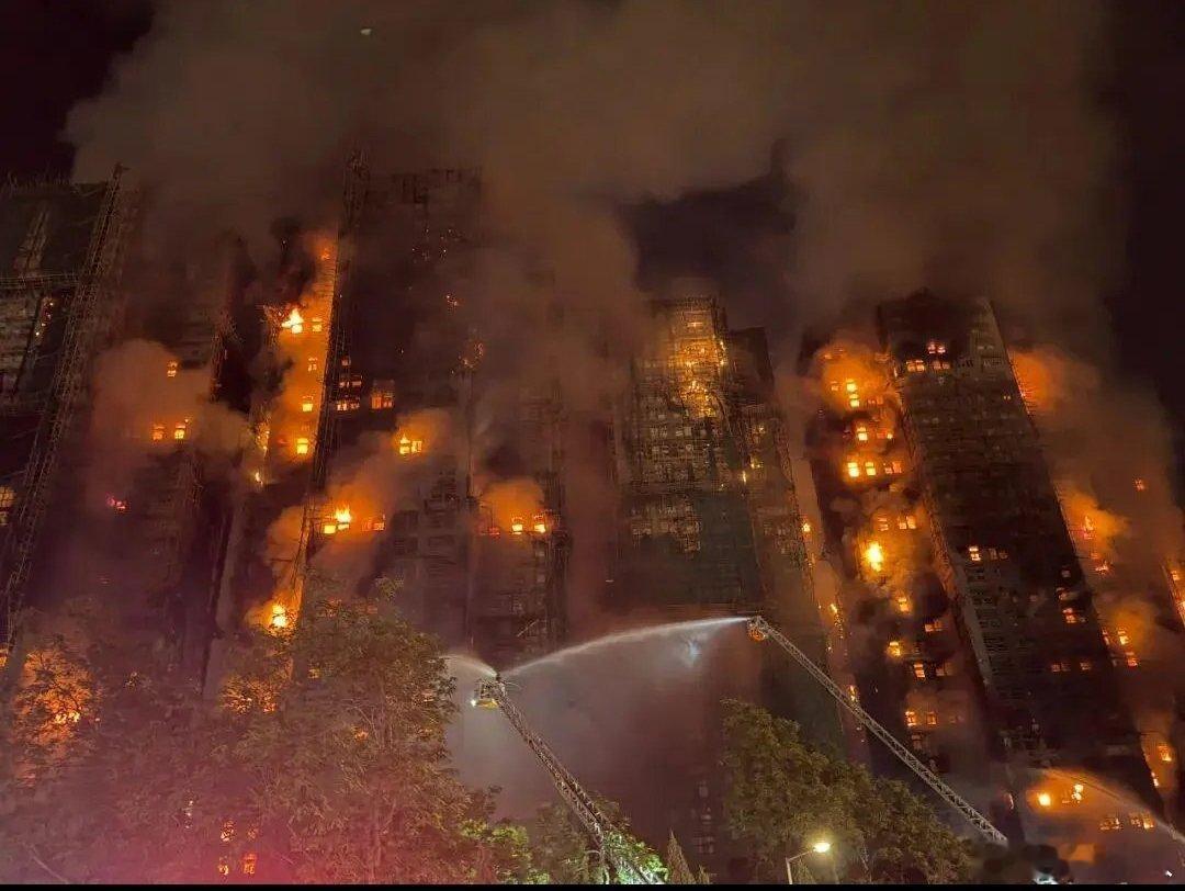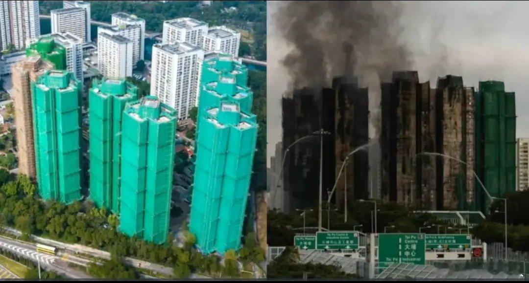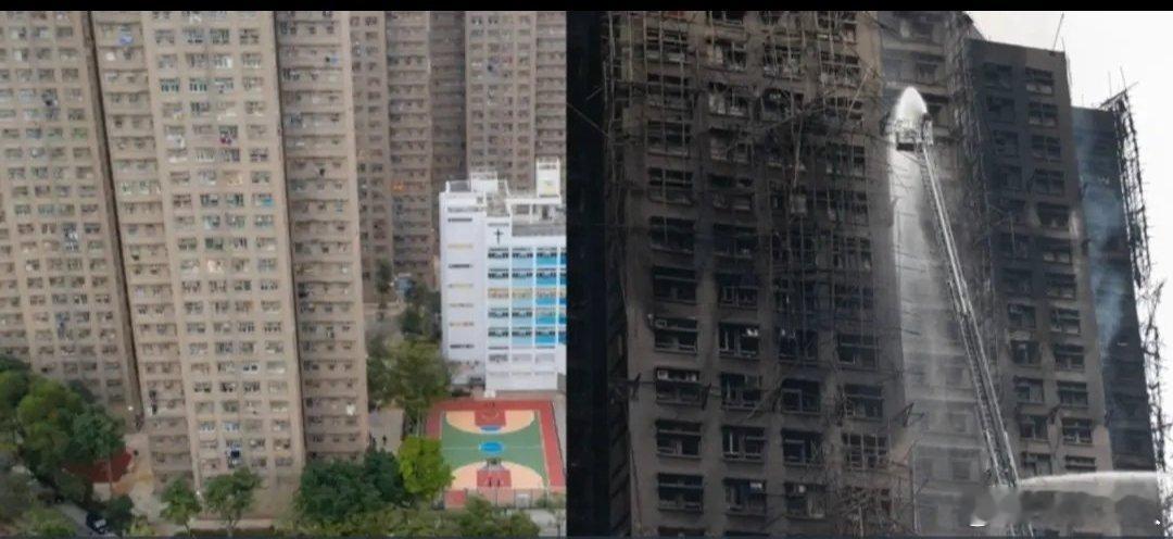 香港起火大楼已无大面积明火香港起火大楼前后对比照现在大火已经被控制,不到两天时间