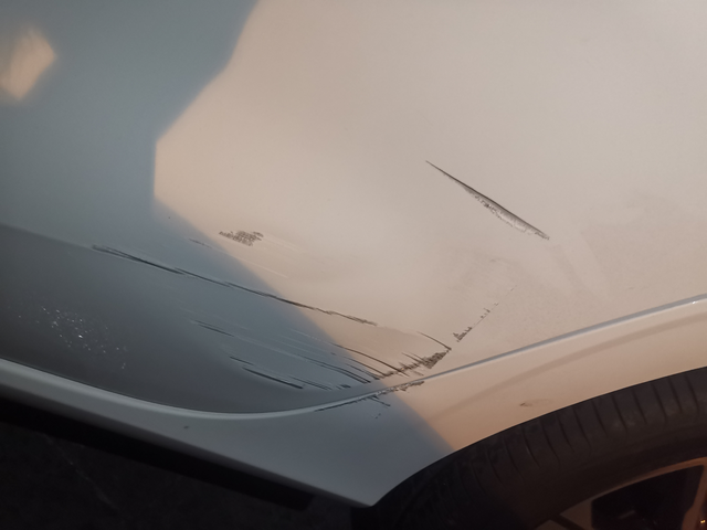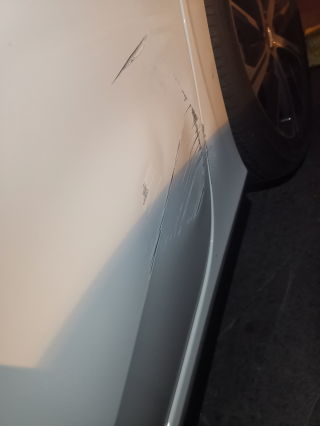 看到车受伤比我受伤还疼 新车一血 晚上九点多,出去吃饭 在不熟悉的小区里 车都乱停 停进去还好好的 吃完饭要走发现位置窄了 直角转弯 直接碰到旁边了 给我心疼坏了