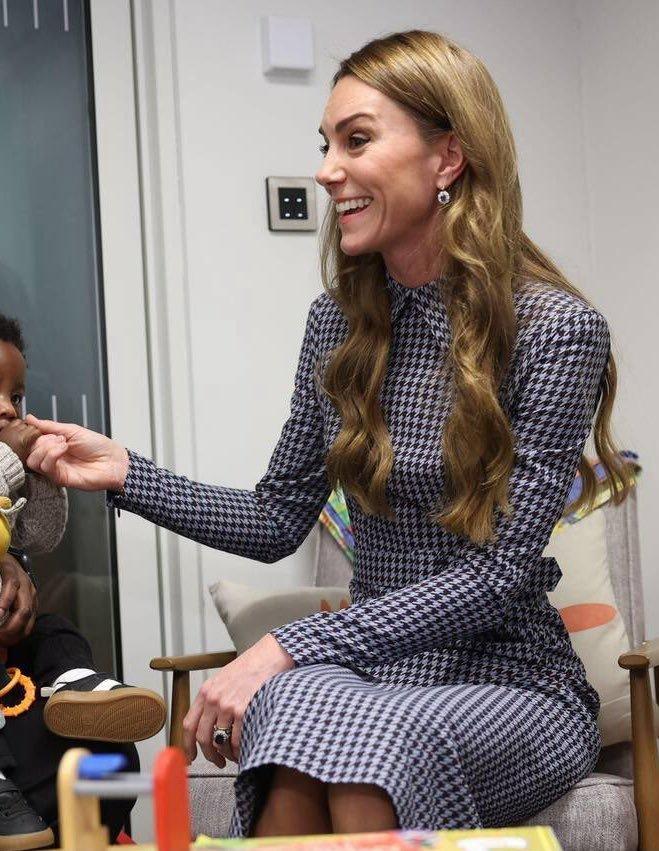 凯特王妃出现在伦敦儿童慈善机构[送心] 作为三个孩子的母亲,凯特义不容辞负责发起关注儿童心理健康的公益项目, 这件复古裙2022年时发色和妆面都偏深, 如今她用亮色妆容配上金棕色长发, 显得气色红润,只是身材比3年前更瘦削了[微笑]