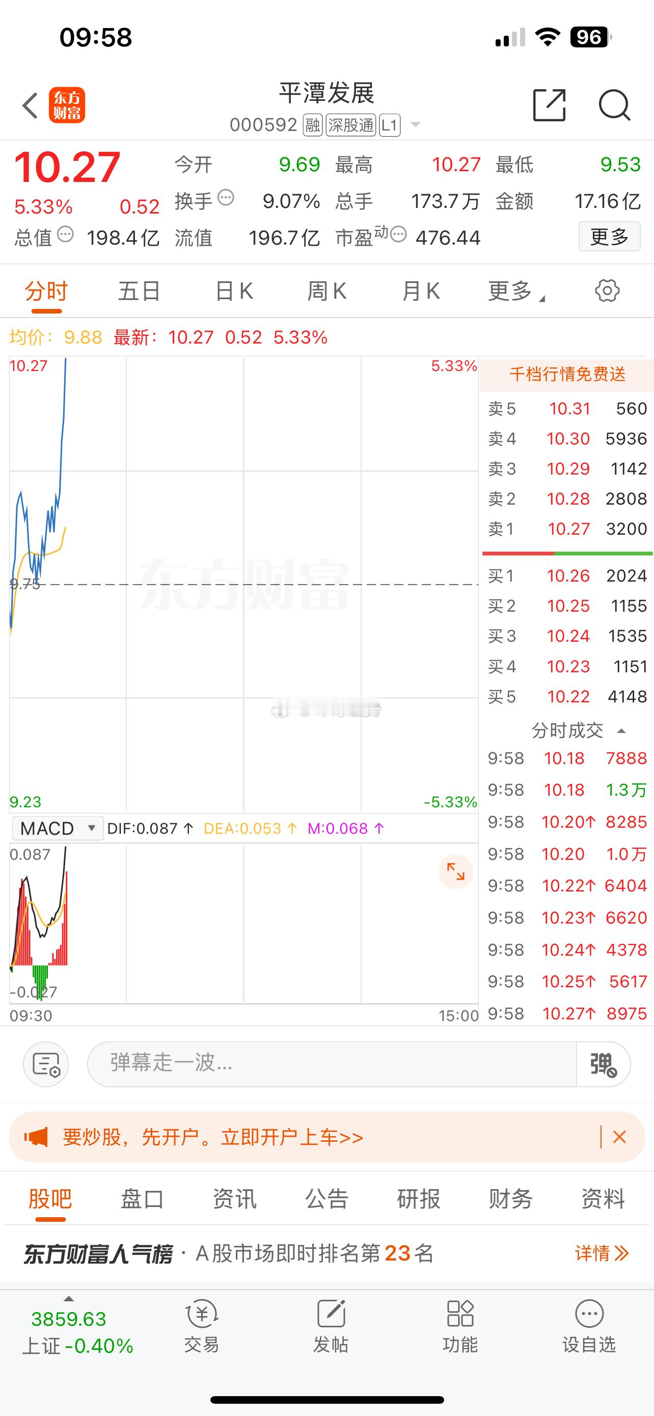 昨天进的平潭发展今天如期反弹,市场核心就是抱团首选的a股股市