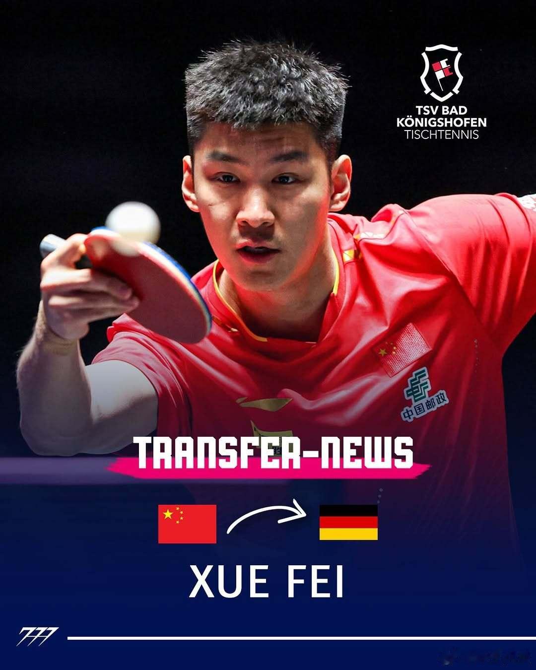 薛飞加盟德甲德甲巴特柯尼希斯霍芬乒乓球俱乐部官宣,中国球员加盟。