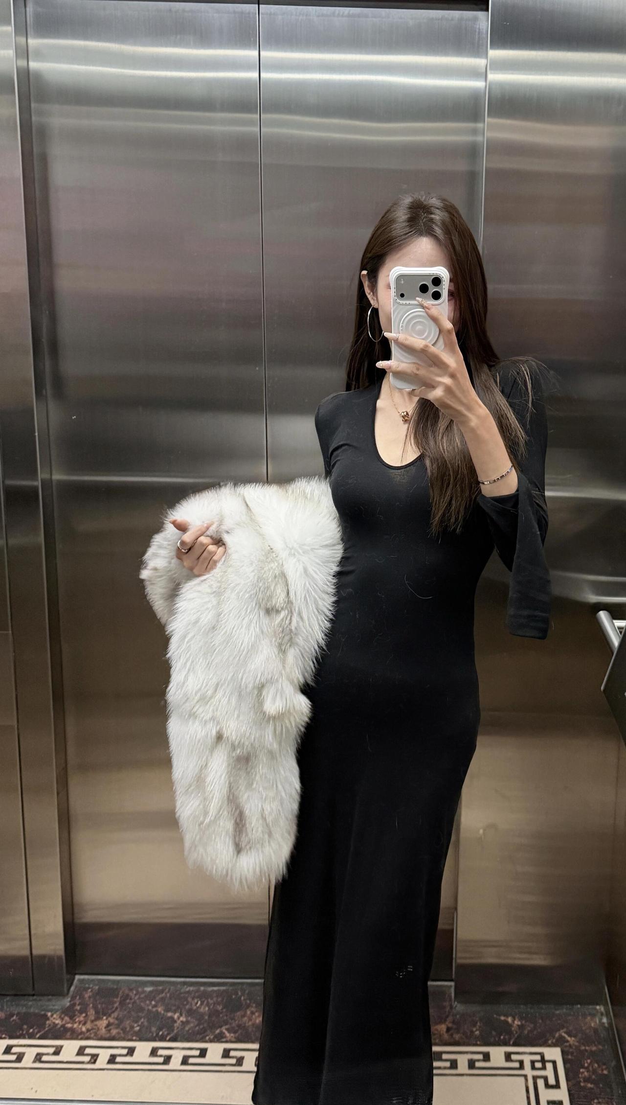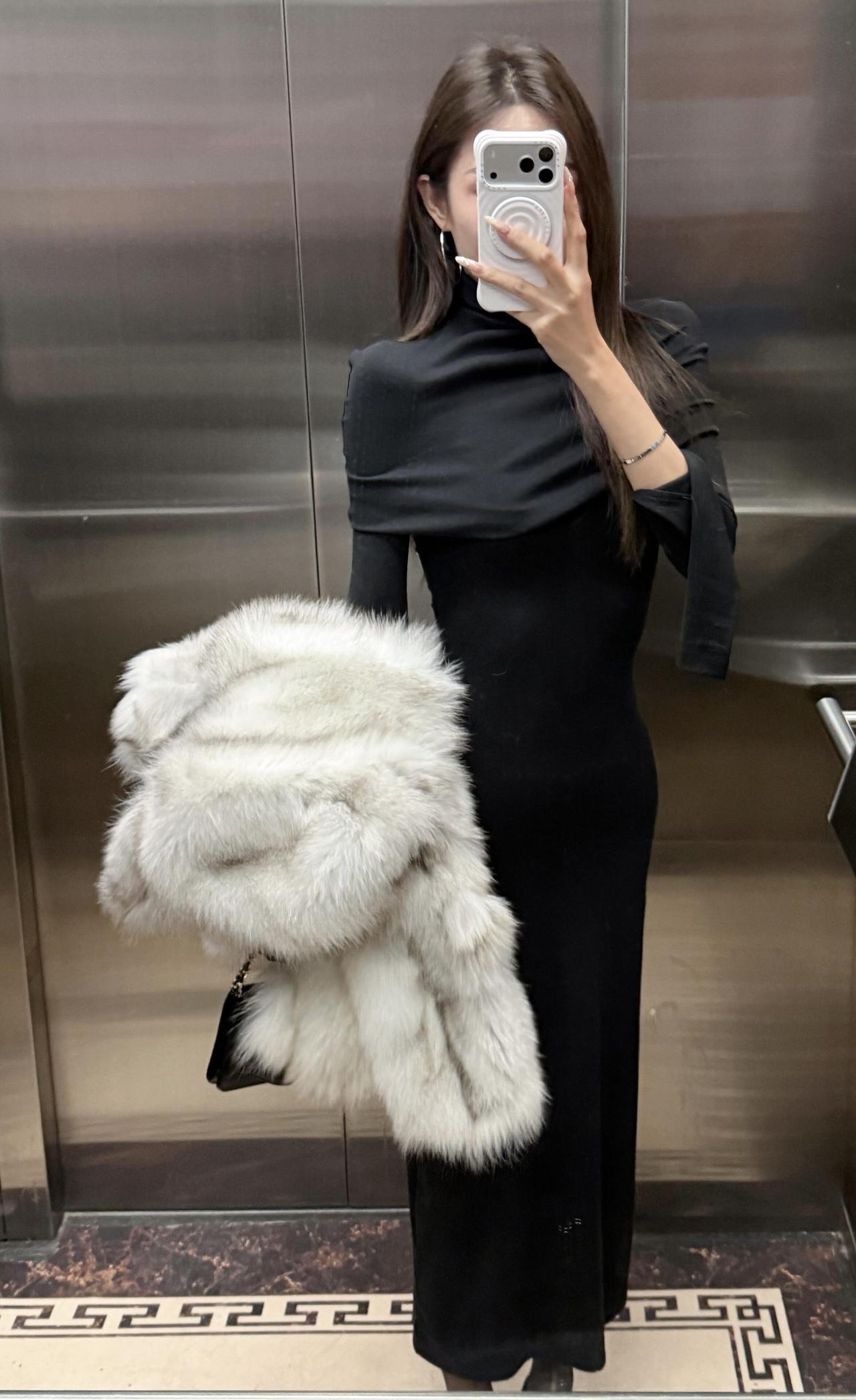 今日穿搭推荐:贵气优雅风格 黑色露肩针织长裙:修身版型能勾勒身材曲线,露肩设计增加小性感,针织材质自带温柔质感,同时长款版型又保留了优雅度; 白色毛绒外套:蓬松的质感既增加了造型的“贵气感”,又能平衡黑裙的冷感,自带秋冬氛围。 适配场合:约会、聚餐、逛街、轻商务场合,优雅度在线,同时毛绒元素又不会显得过于正式。