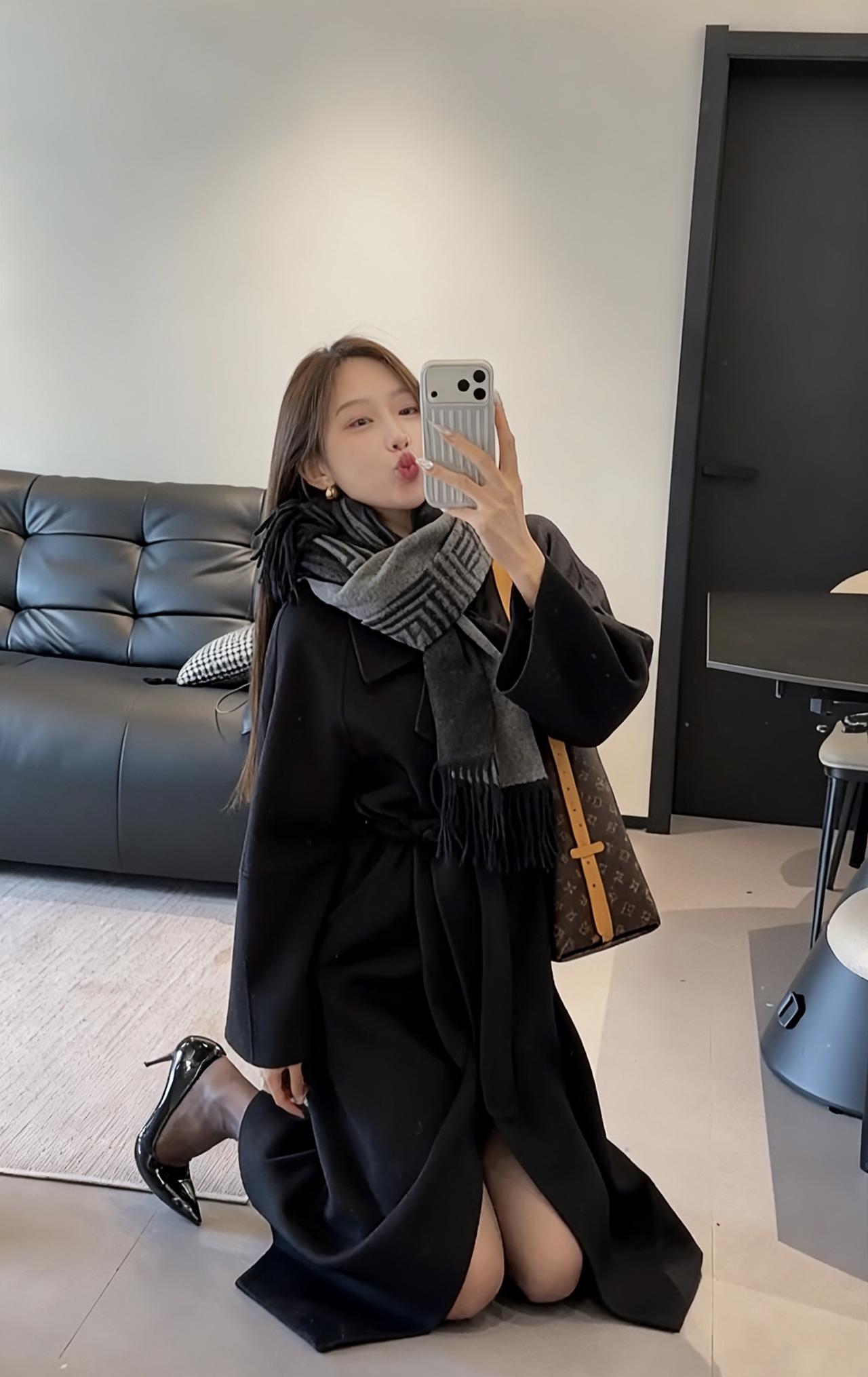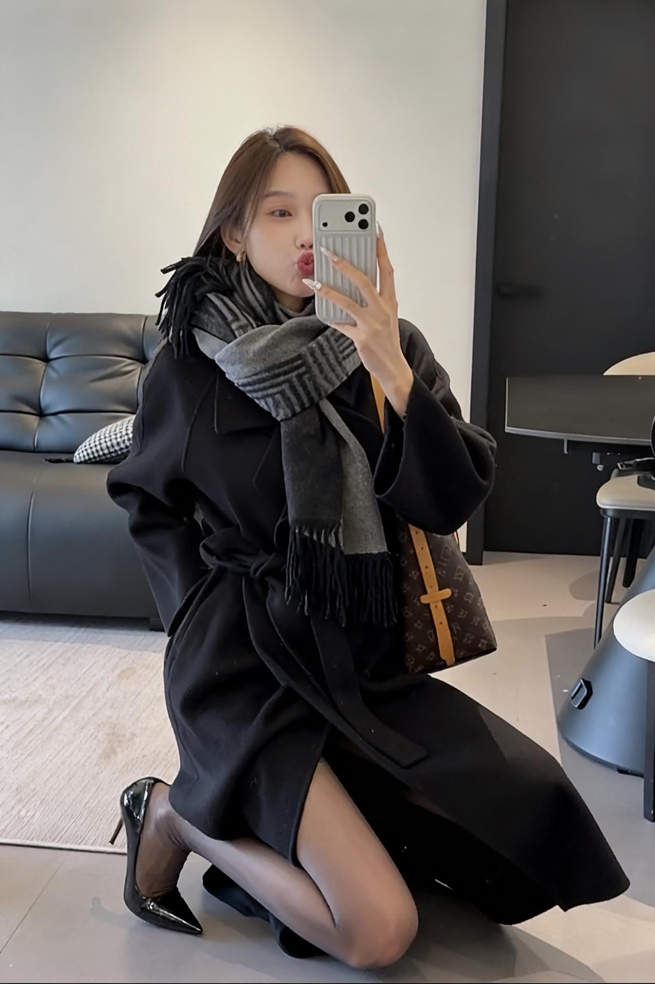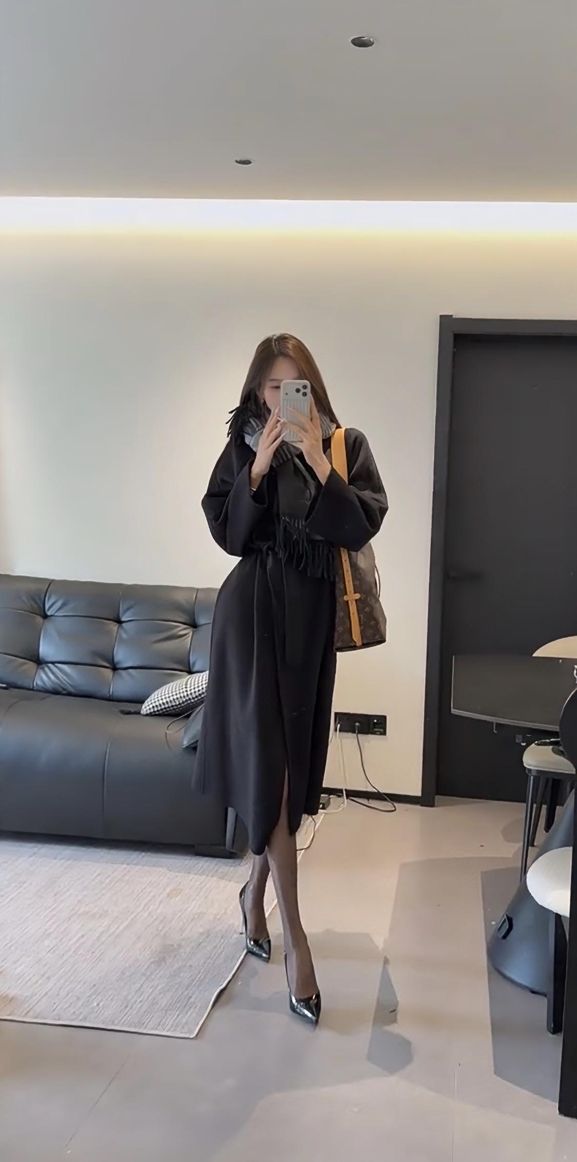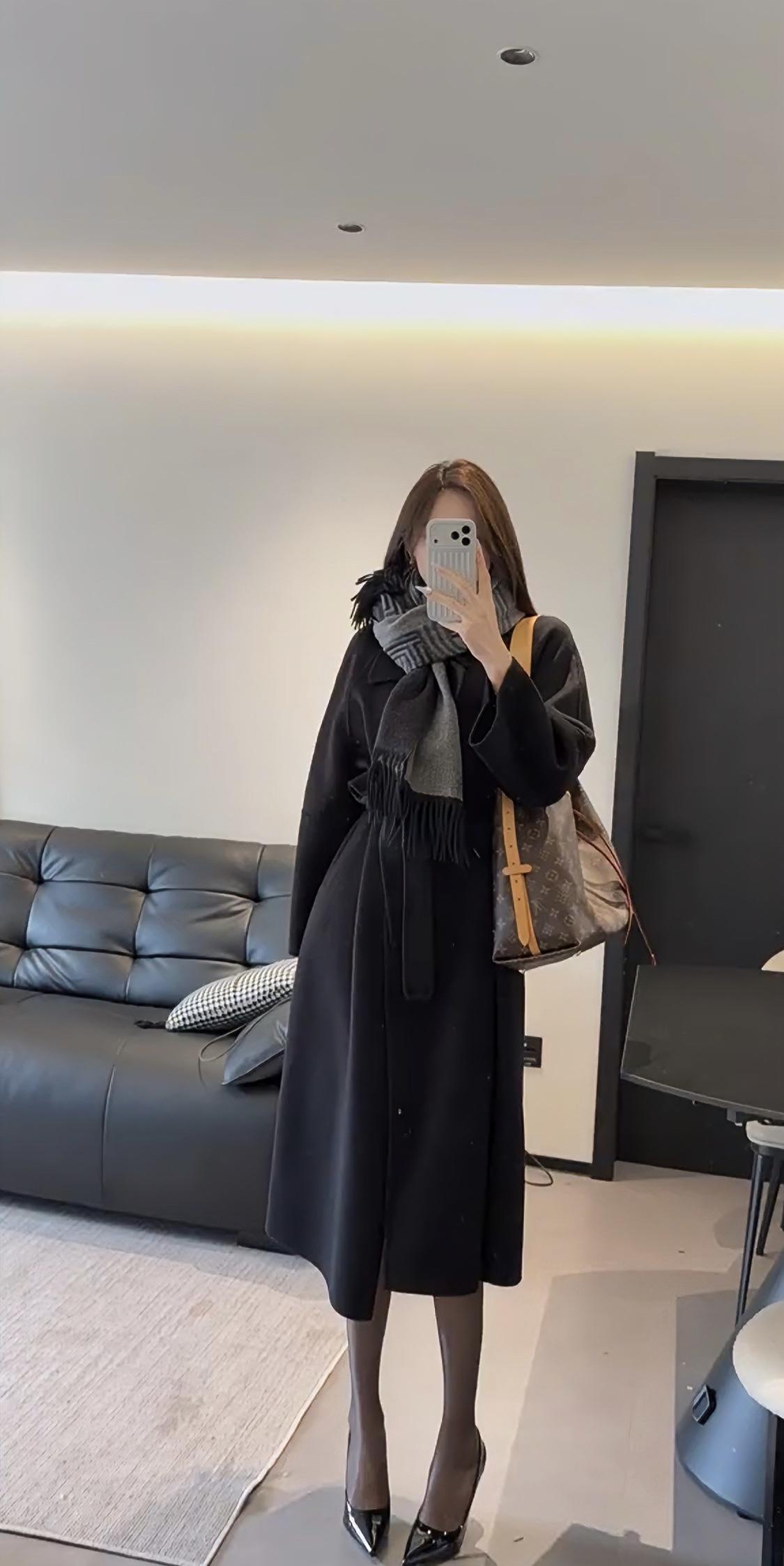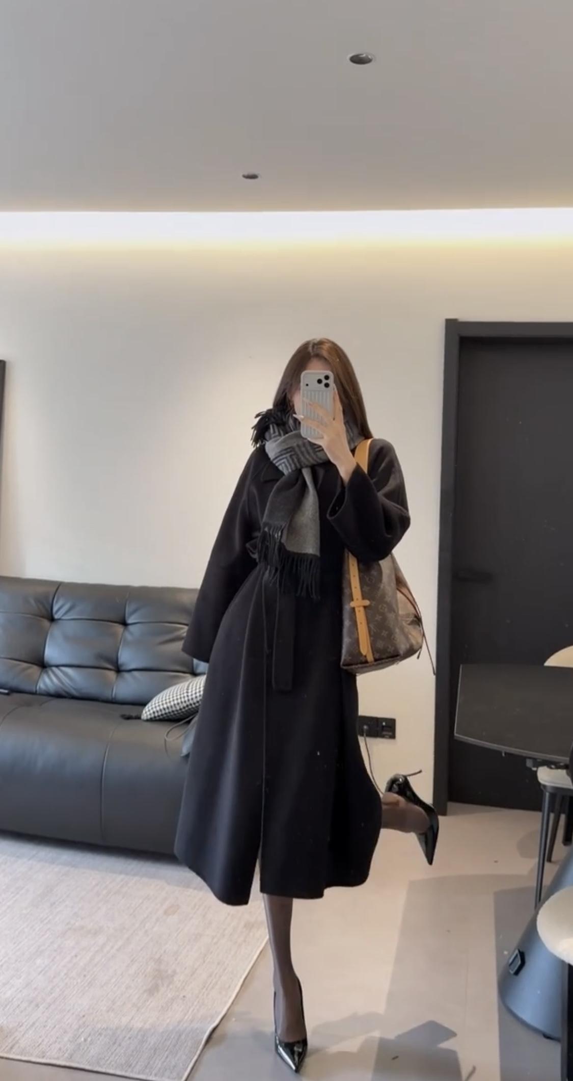 今日穿搭推荐:优雅通勤风,黑色长款毛呢大衣+格纹围巾+黑丝高跟鞋+复古老花包。 大衣:长款版型+收腰设计,既保暖又能修饰身材,黑色经典百搭; 围巾:格纹+流苏元素增加了复古质感,中和了大衣的厚重感; 配饰:黑色打底裤+漆皮高跟鞋提升精致度,老花包是经典款,兼顾实用性和时尚感。 适合场合:日常通勤、逛街、轻社交场合、轻约会,温柔又有女人味,整体造型精致但不浮夸。