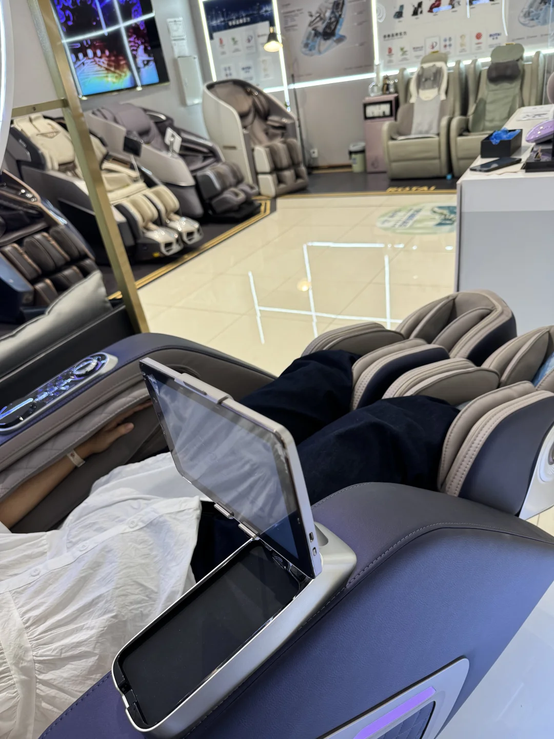 今天路过荣泰体验店 直接被店员小姐姐安利了这台「拉伸²按摩机器人」! 说是帕梅拉同款果然名不虚传🥰 👉🏻创新Bi-Stretch拉伸²系统真的黑科技 躺上去瞬间惊呆! 左右腿居然能分开独立拉伸 像有两个按摩师同时帮你做瑜伽🧘‍♀️ 从脚踝到大腿根都被温柔包裹着拉伸 酸爽感直接冲上头顶!! 💆🏻‍♀️特别是久坐后的僵硬腰背 按摩轮一推一压 配合热敷功能整个人都酥麻了 按完就像刚做完SPA 连肩膀都薄了两公分的感觉!! 🎁刚好赶上中秋/双十一大促 店员说价格比平时直降好几千 还送养生礼包和延长保修 本打工人考虑下单啦!!