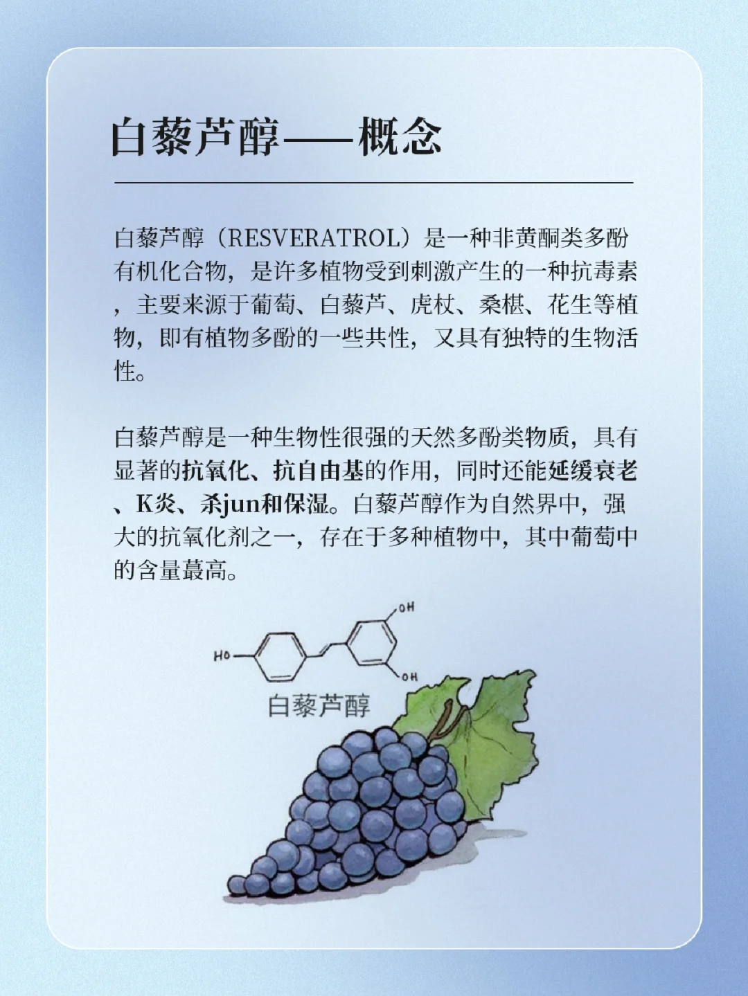 🍇白藜芦醇——概念 🍇白藜芦醇——优势 🍇白藜芦醇——功效 · 抗氧化剂 · 美白提亮 · 抗衰老 · K炎舒缓 🍇白藜芦醇——注意 一起来了解一下吧,下期还想看什么可❤➕🍎告诉我哦