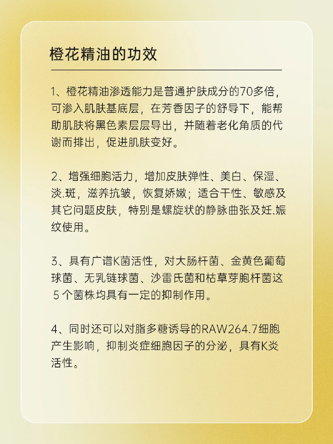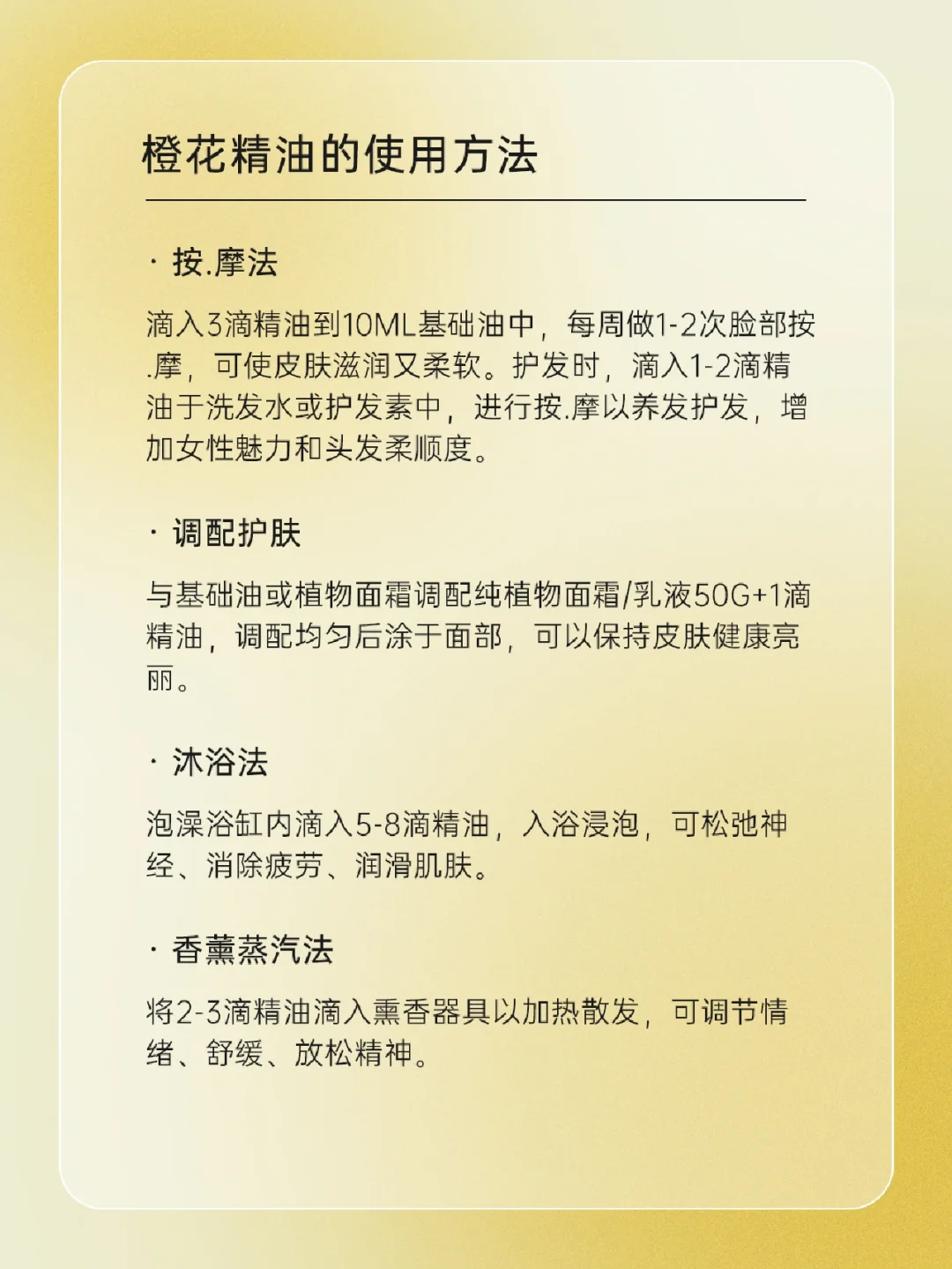 🌼橙花精油是什么 🌼橙花精油的故事 🌼橙花精油的使用方法 🌼橙花精油的功效 • 护肤功效 • 生理.疗.效 • 心理.疗.效 🌼橙花精油的使用注意 一起来了解一下吧,下期还想看什么可以❤➕🍎告诉我哦