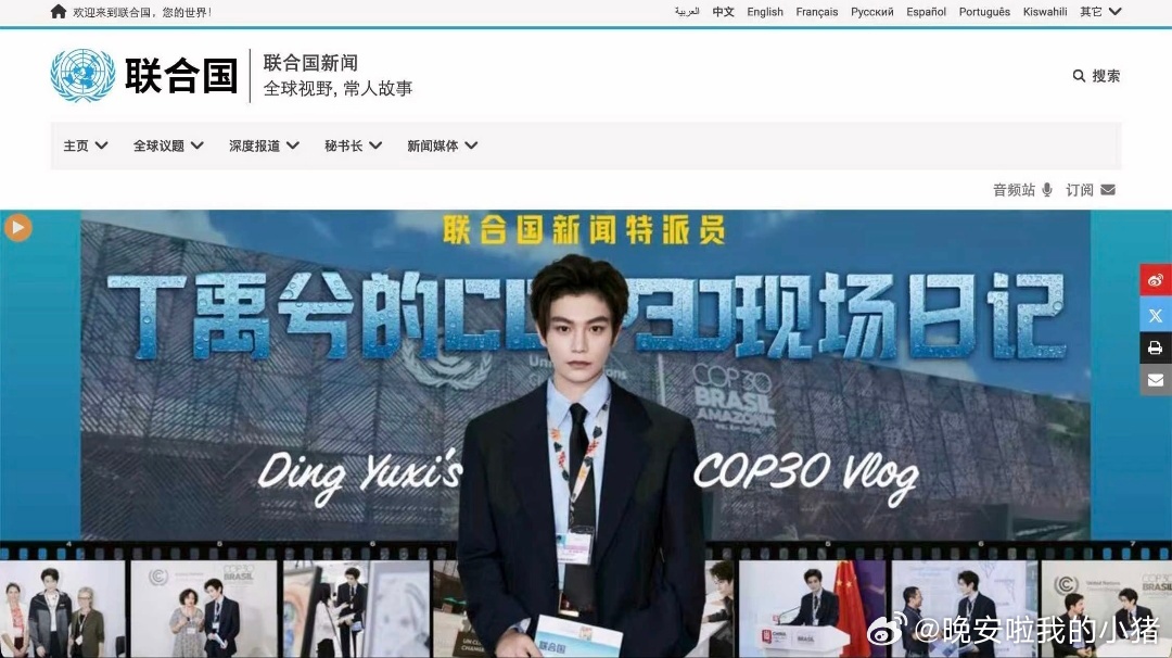 联合国官网封面好大一个丁禹兮,长达七分钟的新闻特派员现场记录,太有排面了