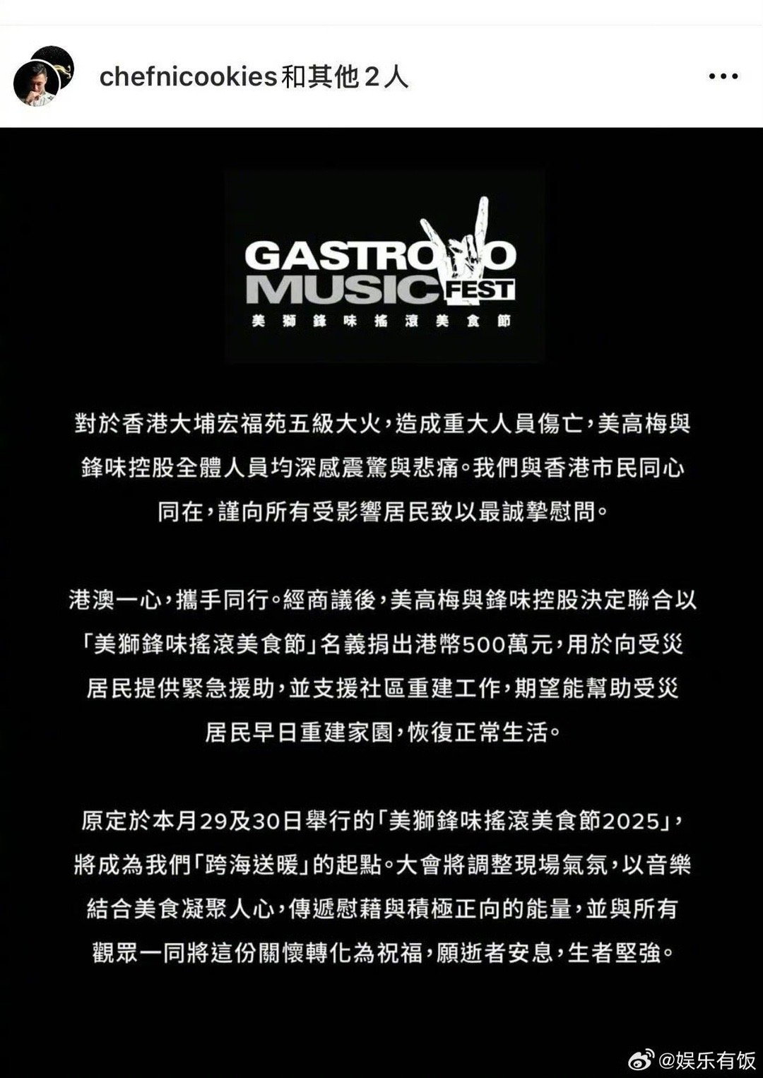 谢霆锋何超琼为香港火灾捐款500万 灾情面前显担当!谢霆锋通过锋味控股、何超琼通过美高梅携手捐赠500万港元,支援香港火灾救援重建。企业家的社会责任感与艺人的公益心在此刻交汇,为受灾群众筑起爱的屏障,盼家园早日重建!