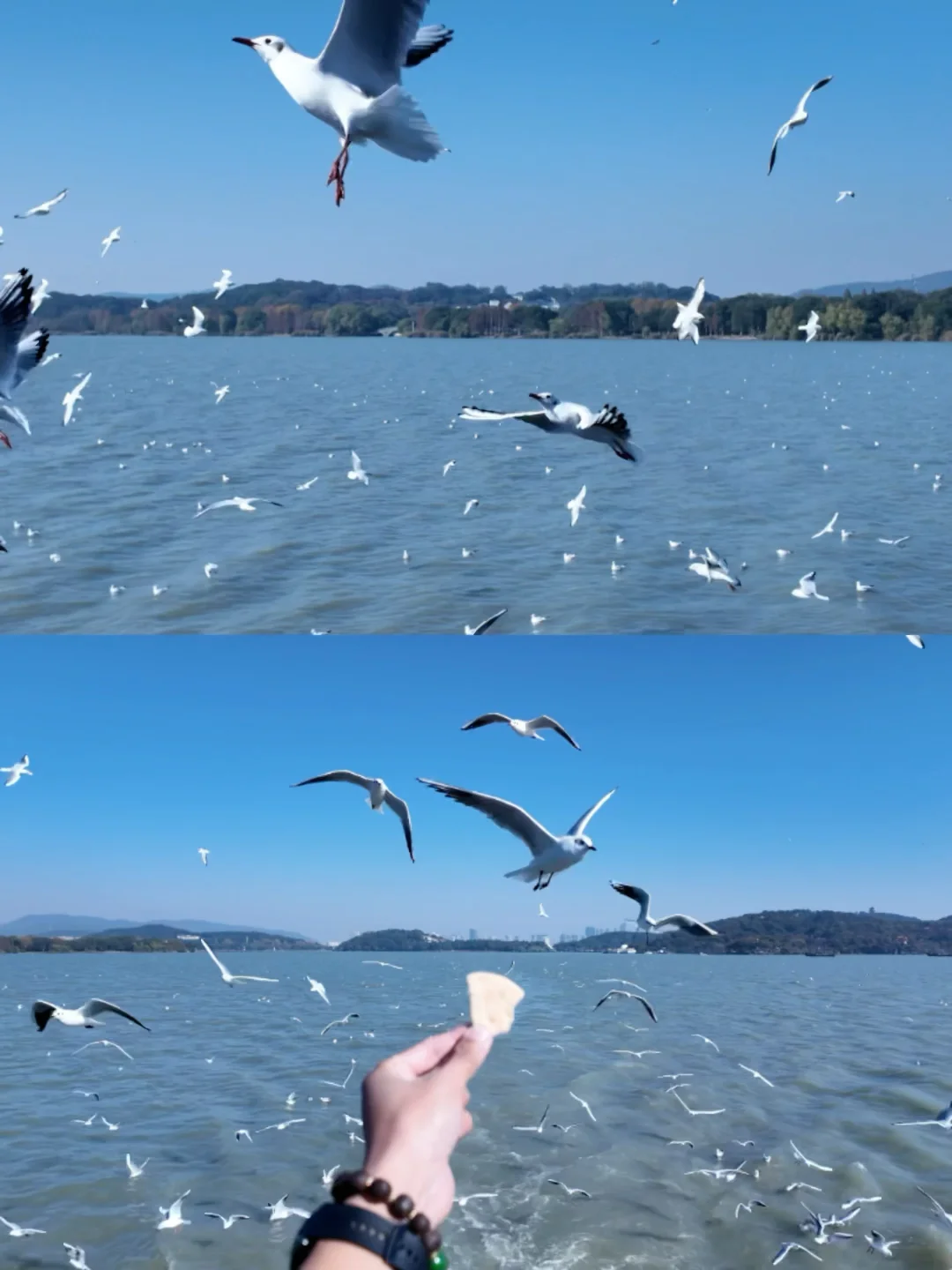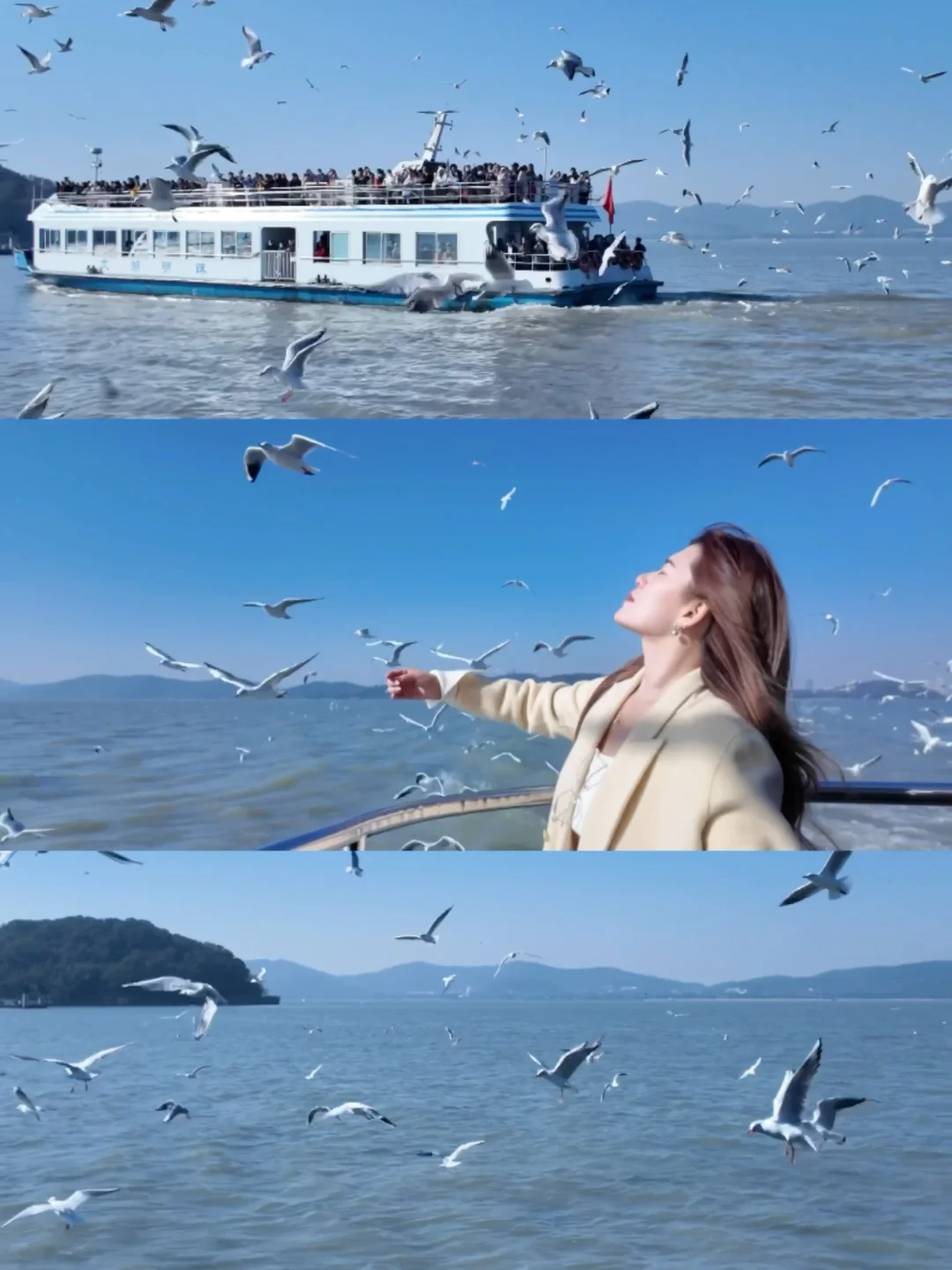 当冬风拂过太湖波🌊 西伯利亚红嘴鸥如期赴约🕊️ 不用去云南大理🍁 就能与它们🪽 来一场浪漫的冬日恋歌💙 . 📍:无锡太湖鼋头渚风景区 🚄:高铁【无锡站】下,打车半小时抵达 🚗:自驾停车导航【充山大门停车场】 📸:2025.11.26 . 🛳游船时间表 🔸鼋头渚游船码头-太湖仙岛码头 首班船:8:50/ 末班船:16:20 🔸太湖仙岛码头-鼋头游船渚码头 首班船:9:10/ 末班船:17:10 . 📷海鸥拍照干货: ✅优先选大晴天,光线足拍出来更出片,阴天质感差很多 ✅上15:30的船,到太湖仙岛码头后不要下船,回程邂逅绝美日落 ✅上船一层更近距离接触海鸥,二层适合拍大景 ✅上船直奔船尾/窗边,近距离抓拍海鸥灵动姿态 ✅自备面包饼干投喂,互动感大片轻松get .