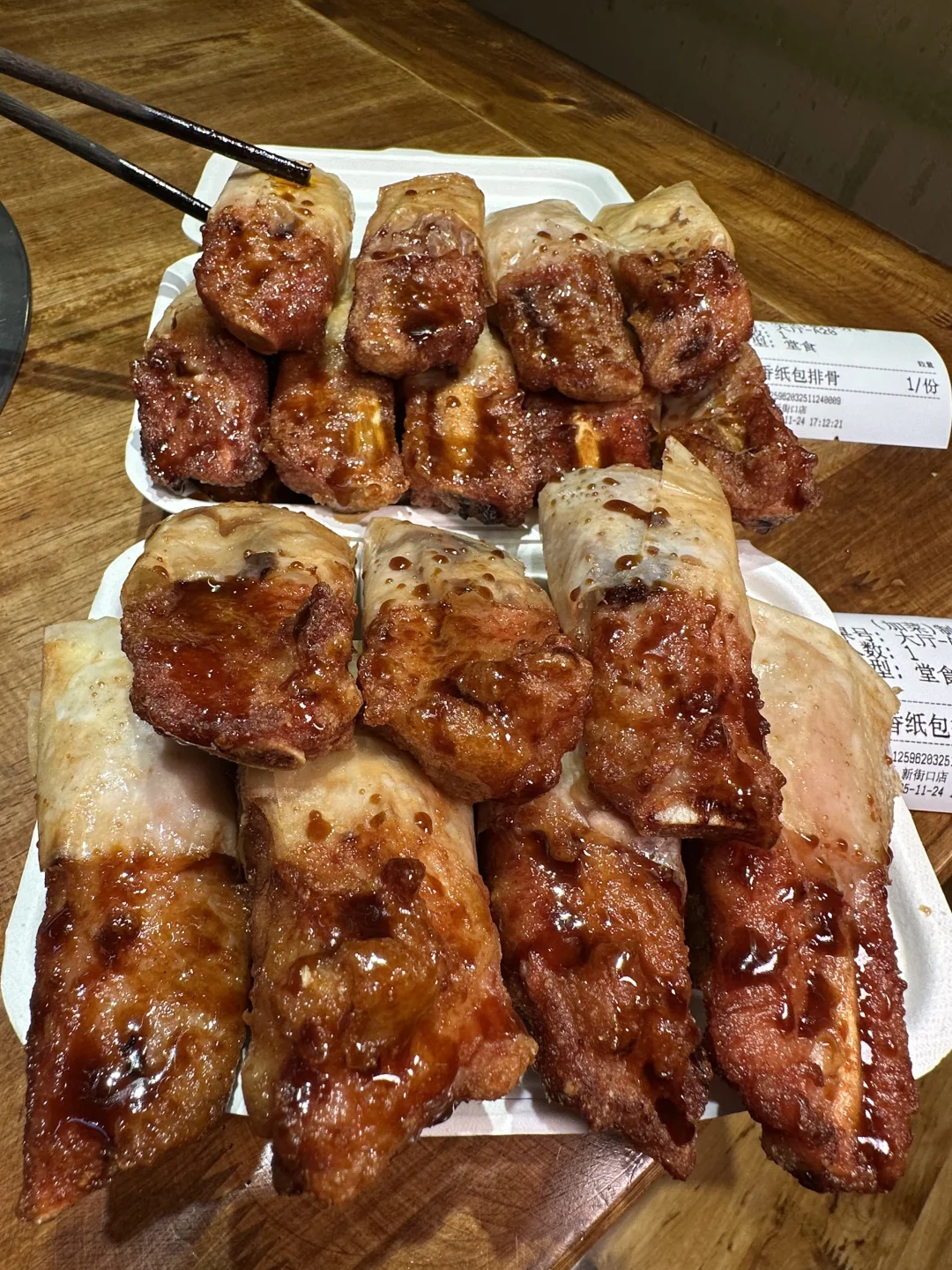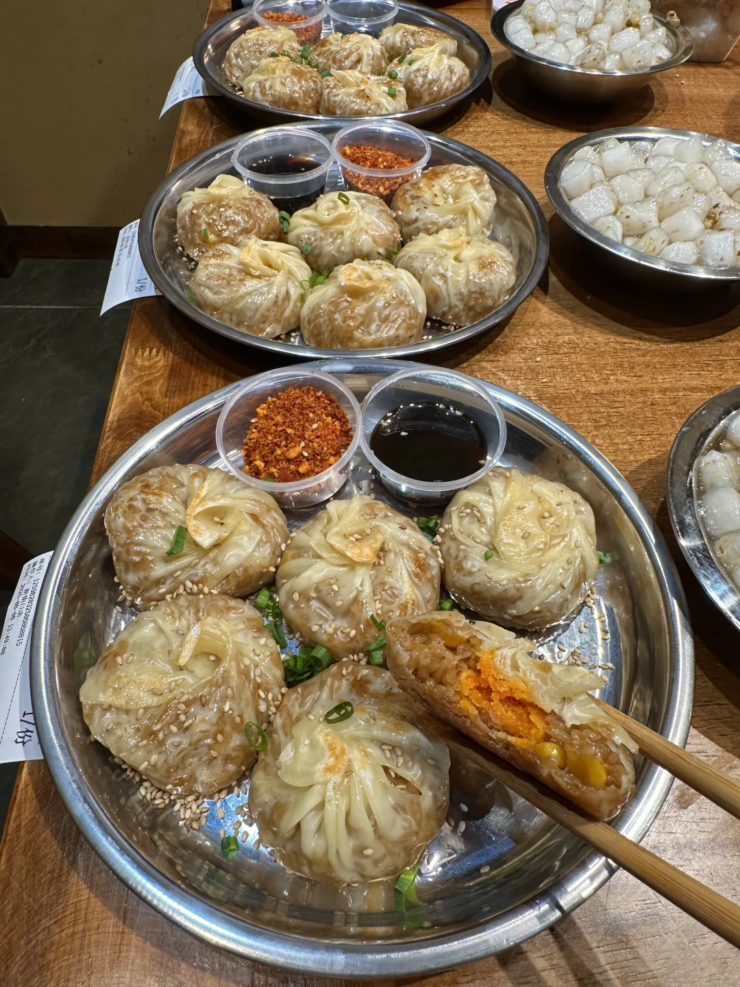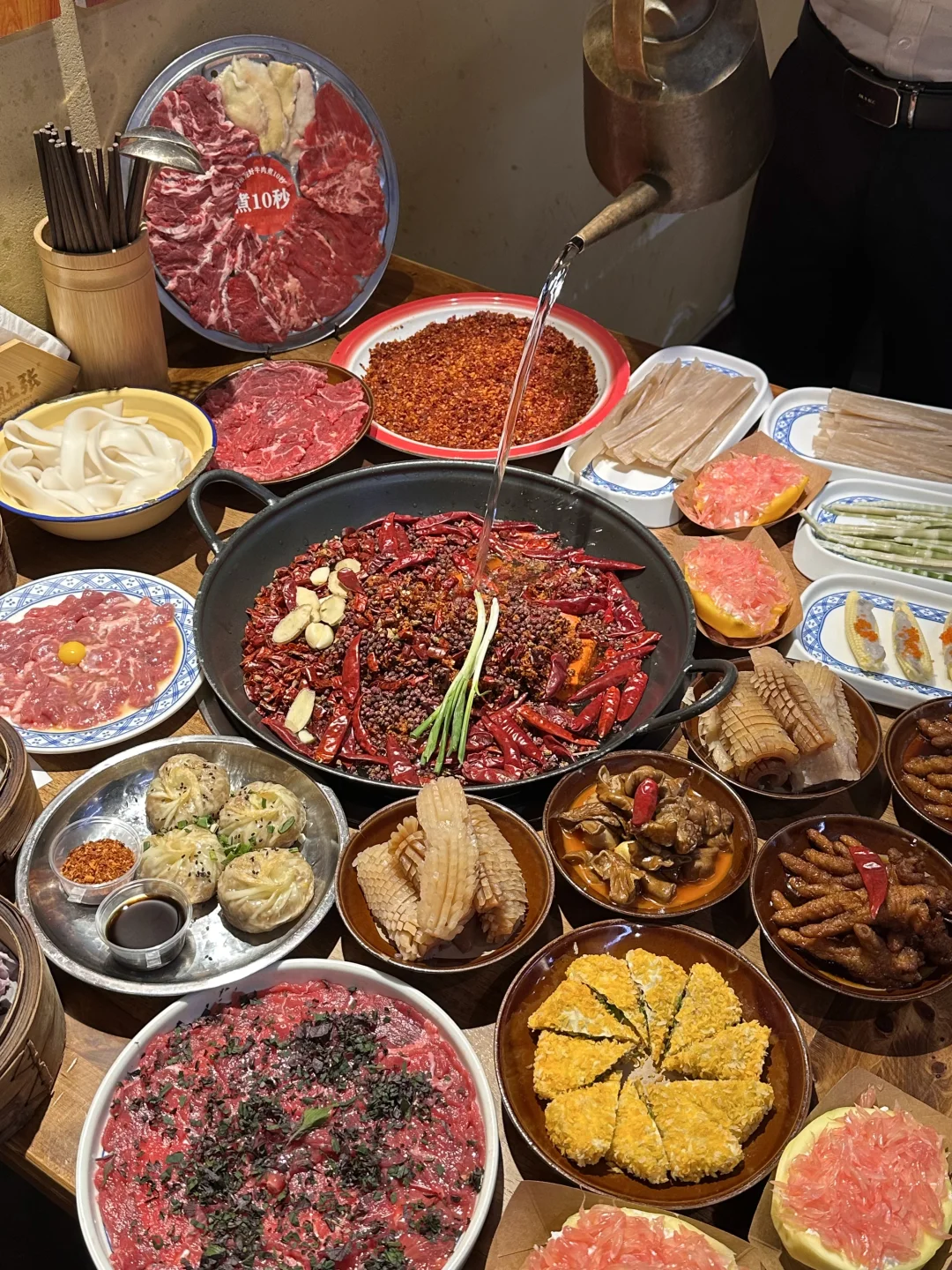 在新街口,纸包排骨,已经三刷了! 现点现炸,炸出来真的很香,外面酥酥的,肉却很嫩!师傅说用纸包排骨直接炸,所以肉才更嫩! · 咸蛋黄纸皮烧麦!也是现点铁板现煎,皮薄馅多,咬开有整颗闲蛋黄,糯米香的香气真的很爱! · 在南京,吃重庆我们都认他家!老板就是重庆人,味道正宗!锅底香,涮啥都好吃! · 经常点毛肚、现切牛肉三拼、虎皮耙鸡爪等 解辣甜品布丁冰淇淋蛋煎糍粑,记得点 绿色的大酥肉是用菠菜汁做的,七彩小烧麦也是门口现包的! · 📍毛肚张重庆火锅(新街口店)