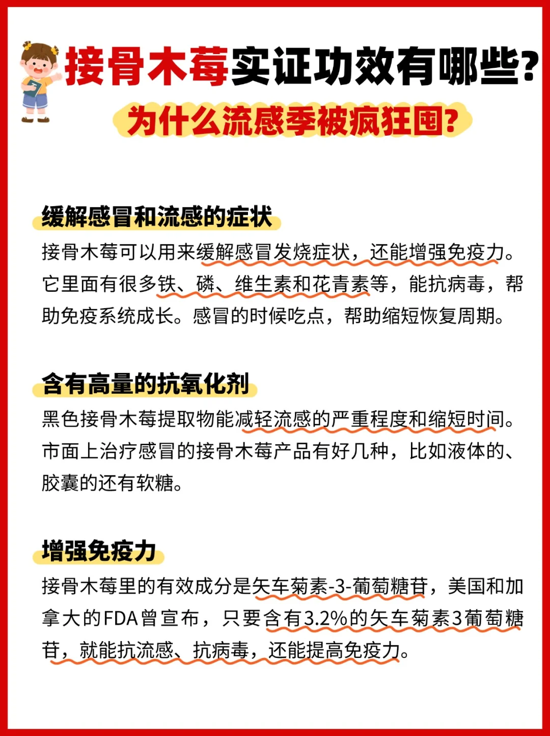 3⃣ 接骨木莓里的成分矢车菊素-3-葡萄糖苷,美国和加拿大的 FDA 报道过,只要含有 3.2%的矢车菊素 3 葡萄糖苷,就能抗流感,还能提高免疫力!👍