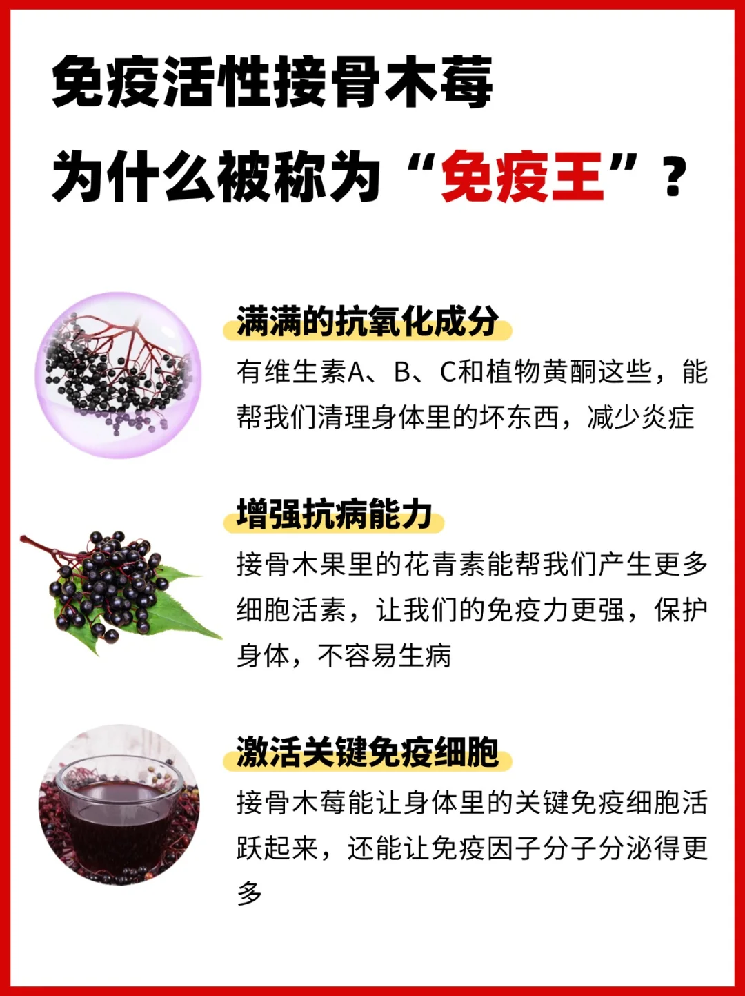 家人们,今天必须给大家好好讲讲接骨木莓!它真的满满的都是抗氧化好东西呢!里面有维生素 A、B、C 和植物黄酮等,能够帮我们清理身体里的坏东西,让我们的身体更强壮!花青素,能帮助我们产生更多细胞活素,使免疫力大大增强,更好地保护我们的身体,让我们不容易生病!