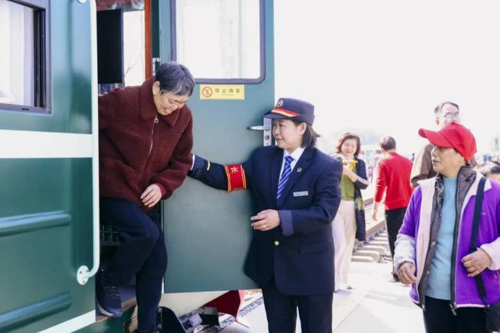不管是车厢内外、站台角落,还是滨水绿廊旁,都是天然摄影棚,红绿交织的复古色调搭配四季有景的生态风光,随手一拍就是文艺大片。