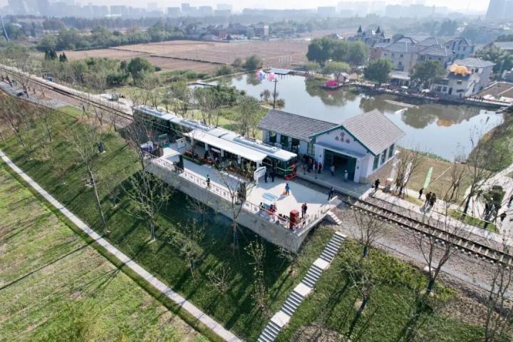 绿皮火车、复古站台、铁路咖啡……近日,余杭“穿越时光·遇见苕溪”宣杭拾忆铁路主题公园开园。