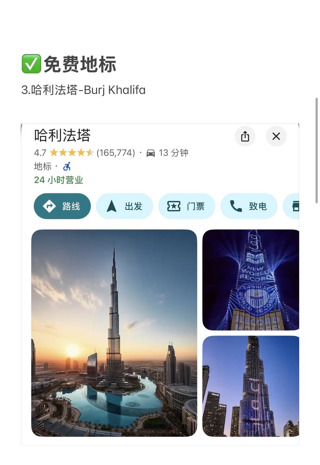 ✅ 哈利法塔——Dubai Mall外或Souk Al Bahar桥上,夜景更震撼!🌆