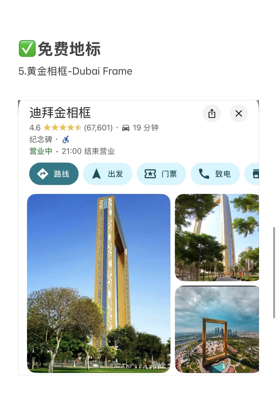 ✅迪拜相框——Zabeel公园远观,金色框架+城市全景超震撼!🖼️