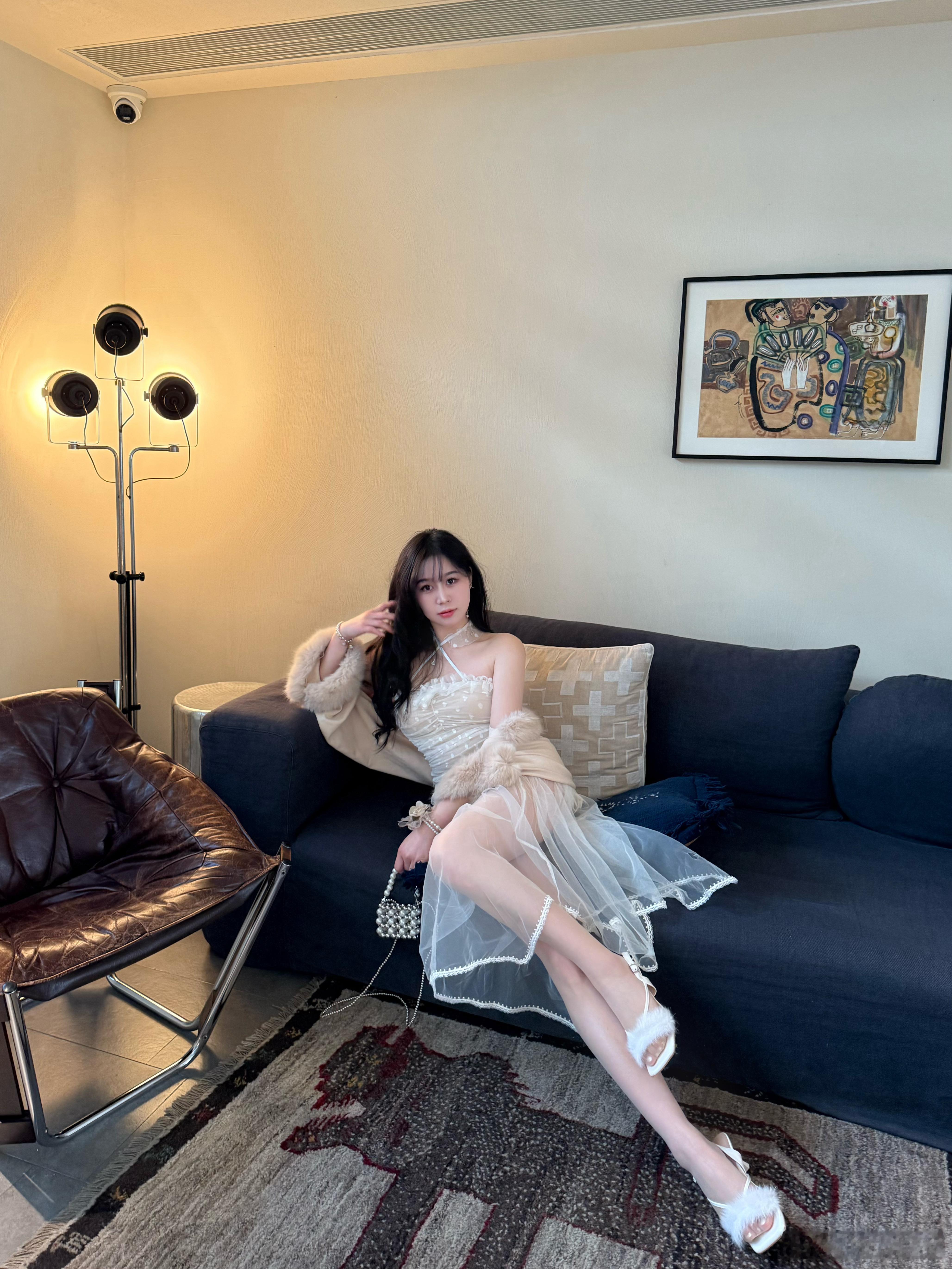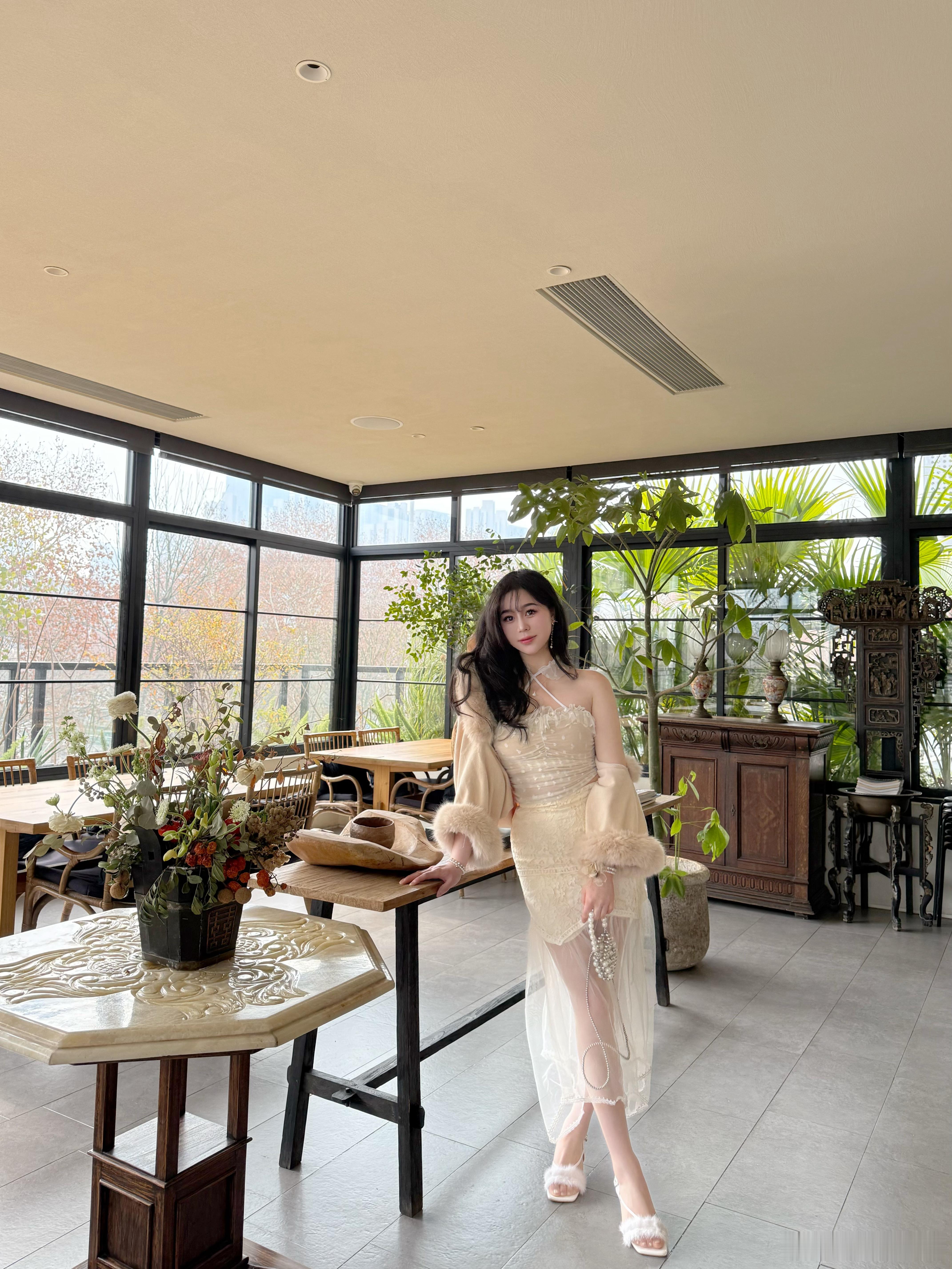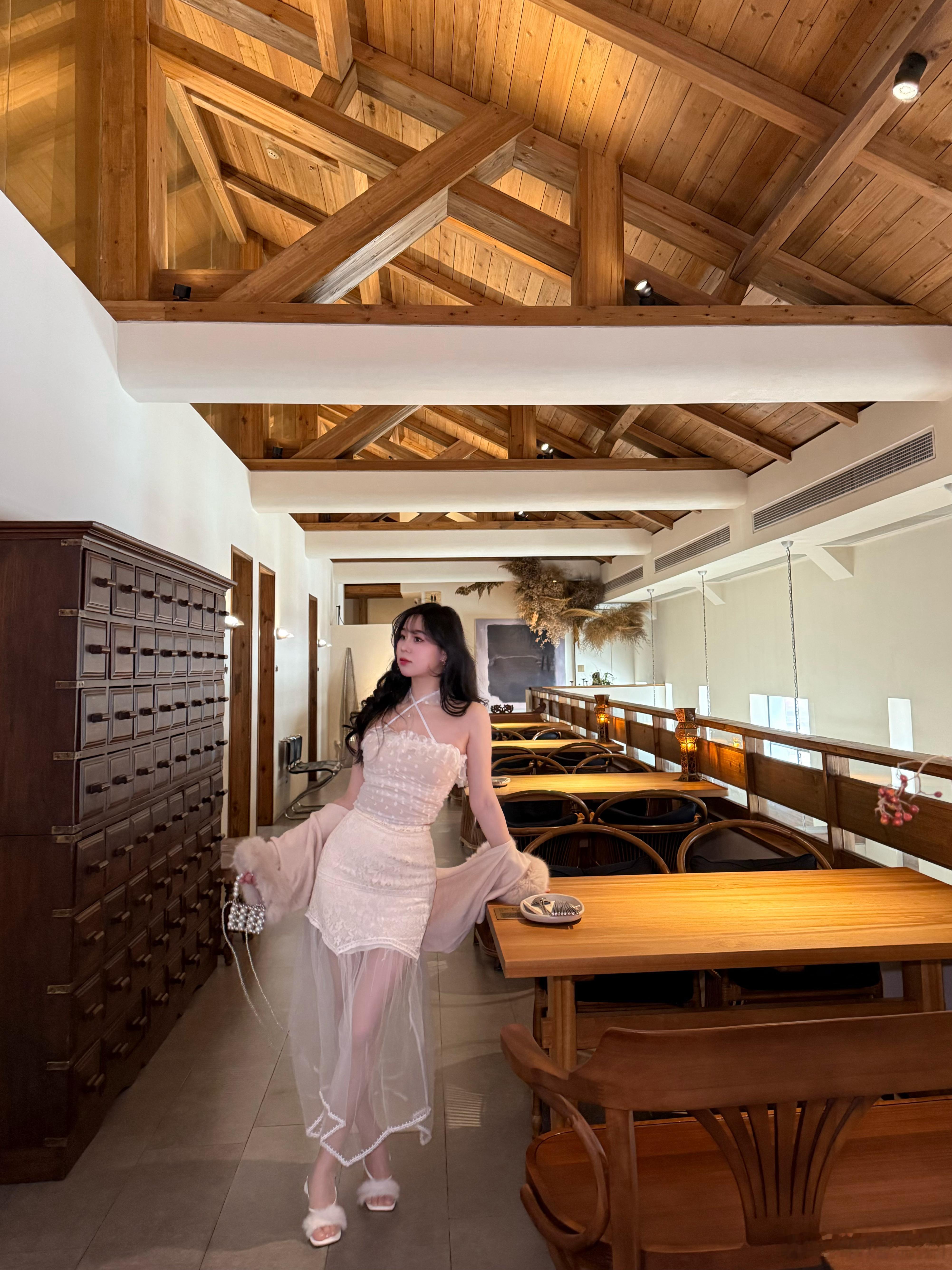 孙允珠身处一个简约而不失格调的环境。阳光透过轻柔的白色窗纱,洒落在木质地板上,一