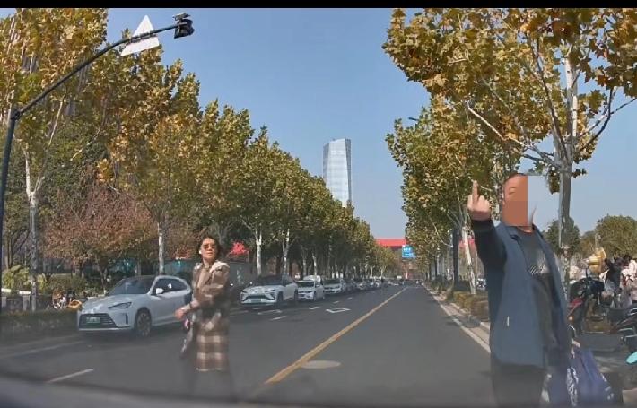 一家三口横穿马路,对司机竖中指 11月23日,上海,一司机发布行车记录仪视频。 视频里, 一男子开车时遇到一家三口横穿马路, 他鸣笛提示后, 孩子父亲竟对着他竖中指, 还站在车前不让走, 期间多次对着车辆比划、言语交流, 最后交警到场处理。 这种不遵守交通规则还挑衅的行为, 真是太不应该了, 大家过马路可得走斑马线, 开车也得互相体谅,别让路怒坏了心情。 路怒症