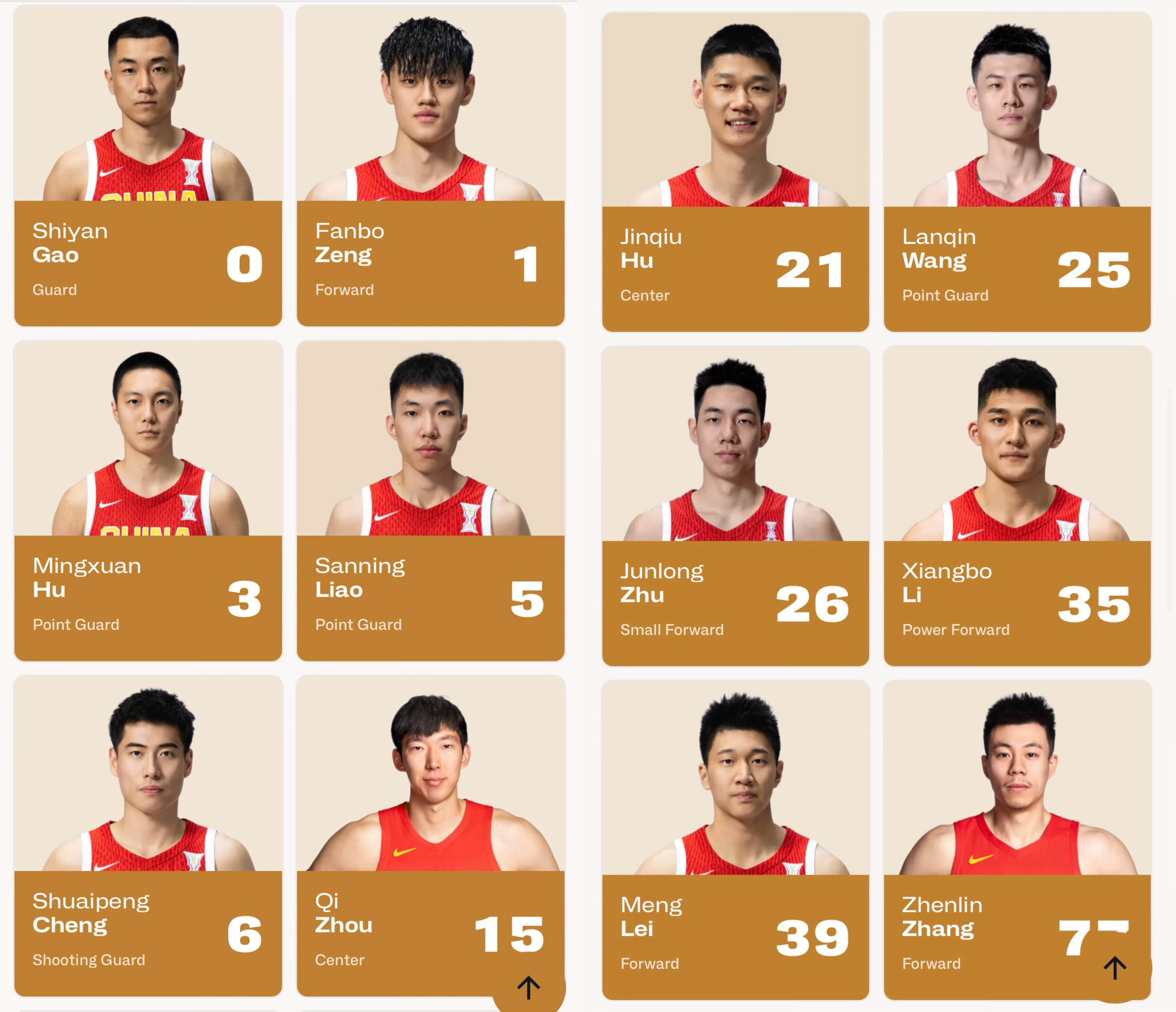 今晚世预赛中国男篮vs韩国男篮的大名单:高诗岩、曾凡博、胡明轩、廖三宁、程帅澎、